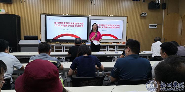 5月25日下午,宝石与艺术设计学院在学校明理楼303召开清廉学校建设动员会。学院班子成员、各教研室成员参加了动员会,会议由党委副书记、纪委书记黄石莲主持。