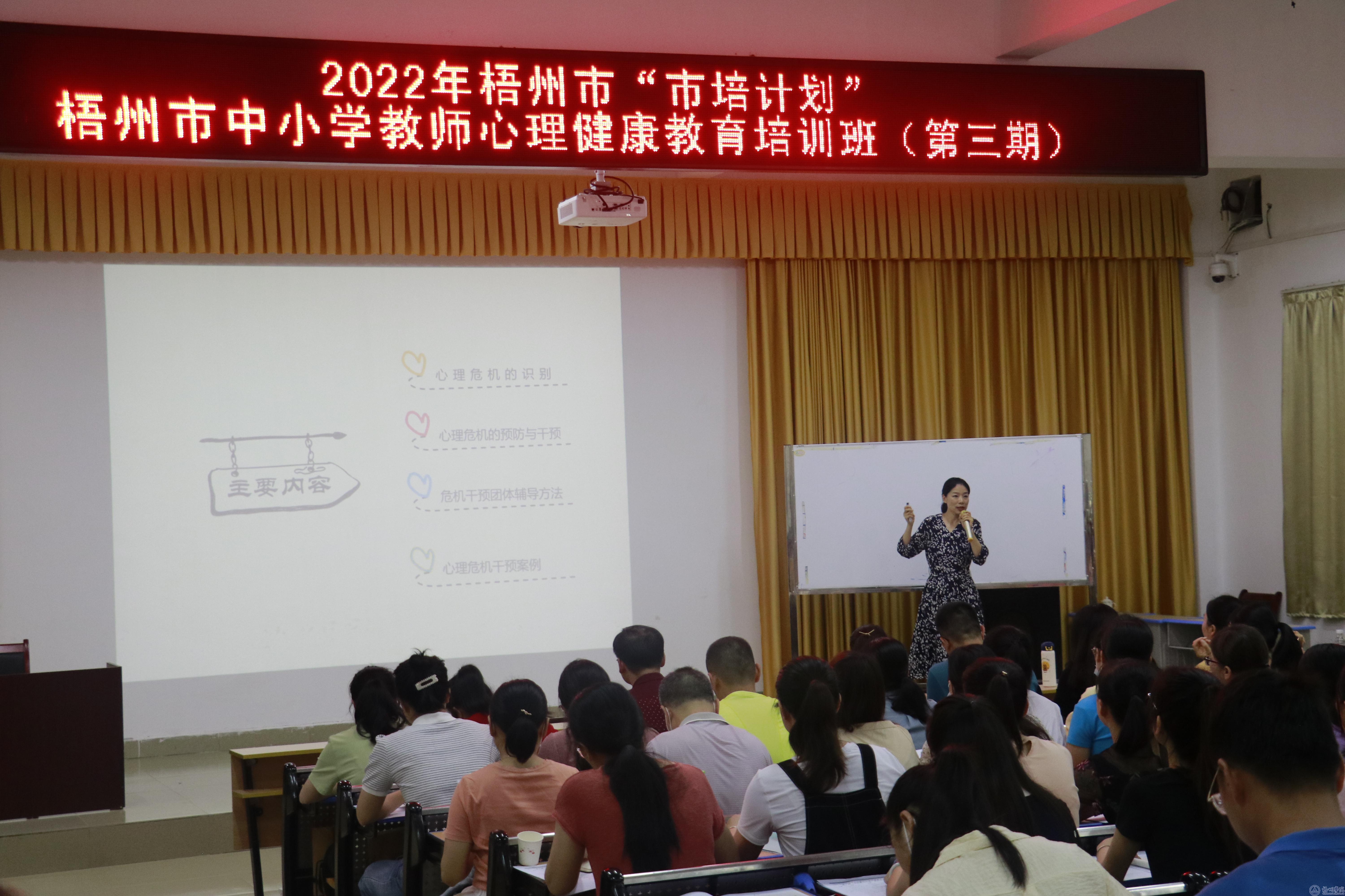 5月18日至31日,我校心理健康咨询中心教师李青、李淑华、甘贞洁等受邀为梧州市中小学生教师进行心理健康教育专题培训。分别以《如何做好中小学生生命教育》《看见 理解 关爱——中小学生心理危机干预与预防》《中学心理辅导活动课的设计与实施》《探索优势 遇见更好的自己》为题开展专题讲座和团体心理辅导