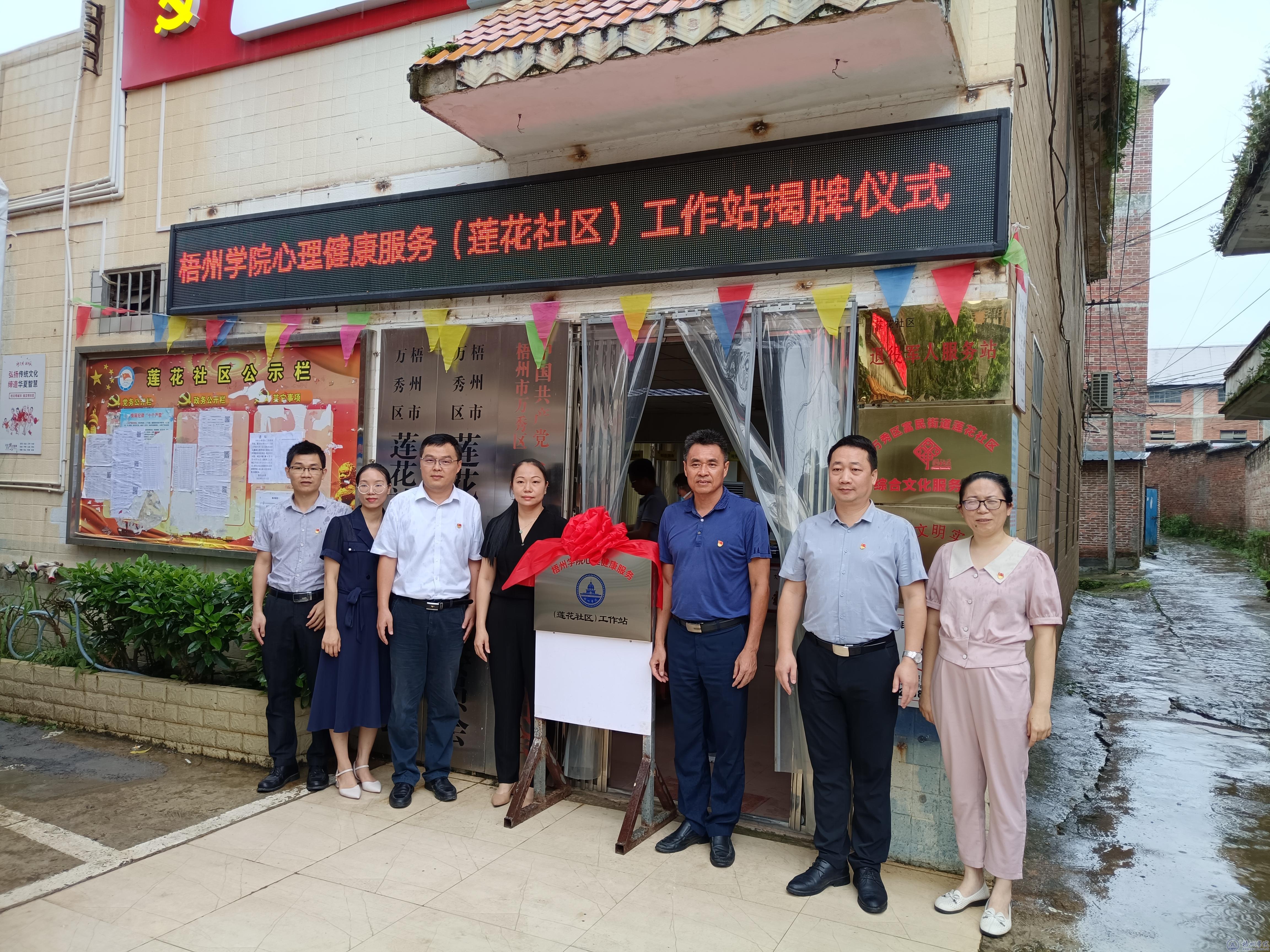 6月13日,梧州学院心理服务工作站在万秀区莲花社区揭牌成立。学校党委常委、组织部部长黄健武,学生工作部(处)长李德华,富民街道党工委书记林岳龙出席揭牌仪式。学校党委组织部、学生工作部及莲花社区相关工作人员参加了揭牌仪式。