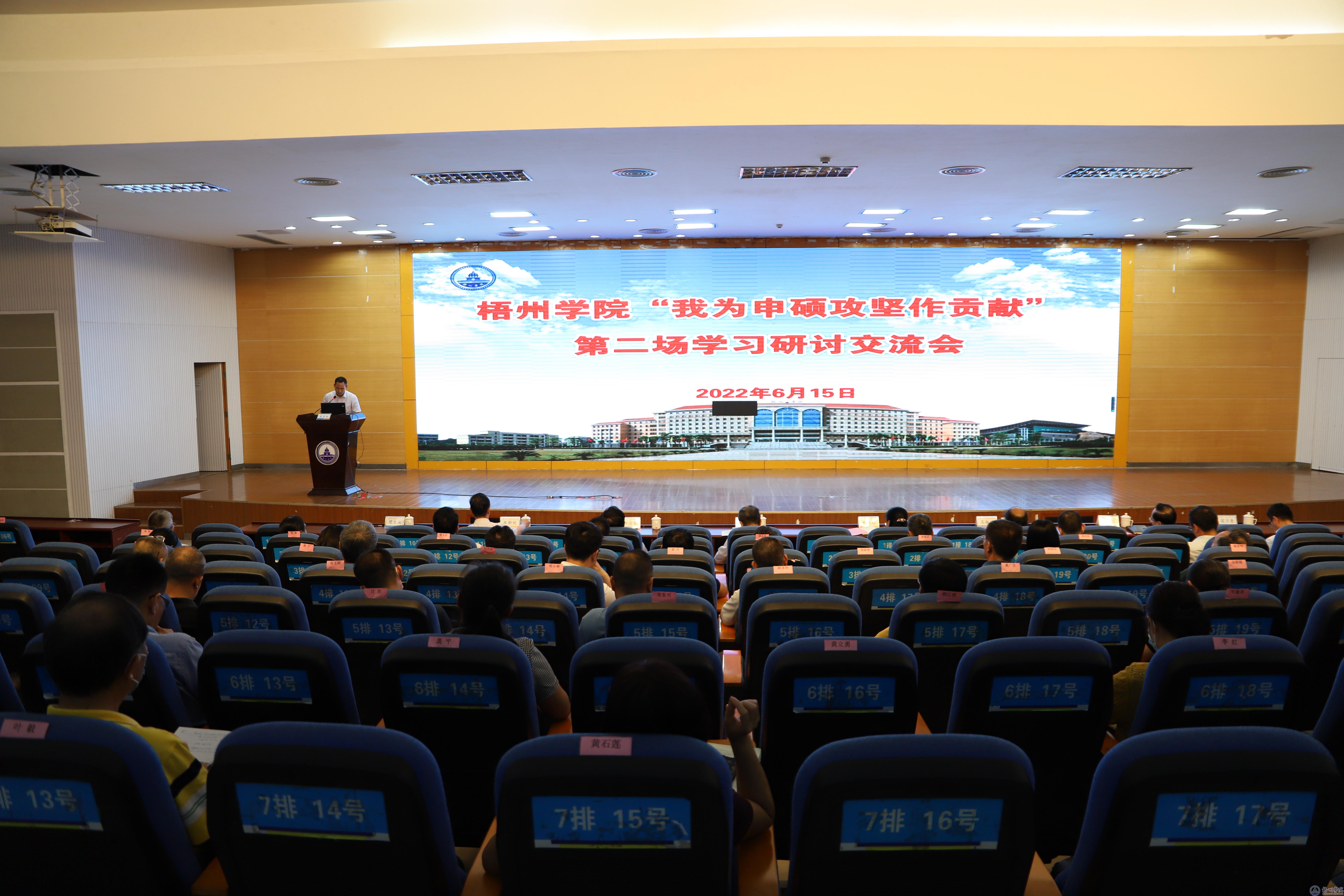 为统一思想,凝聚共识,全面推进申硕攻坚工作,6月15日下午,学校在明理楼一楼学术报告厅召开“我为申硕攻坚作贡献”第二场学习研讨交流会。全体学校领导、全体中层干部参加会议。会议由学校党委常委、宣传部部长陈健萍主持。
