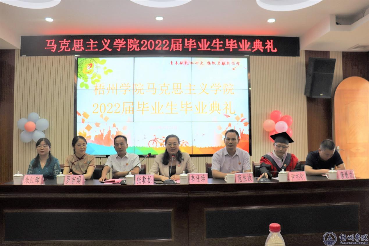 6月24日,马克思主义学院在明理楼七楼视频会议室举行2022届毕业生毕业典礼。学校党委书记韦仕珍,学校党委常委、副校长范生汝,马克思主义学院班子成员以及教师代表、2022届全体毕业生和非毕业生代表参加毕业典礼。马院党委书记张朝松主持毕业典礼。