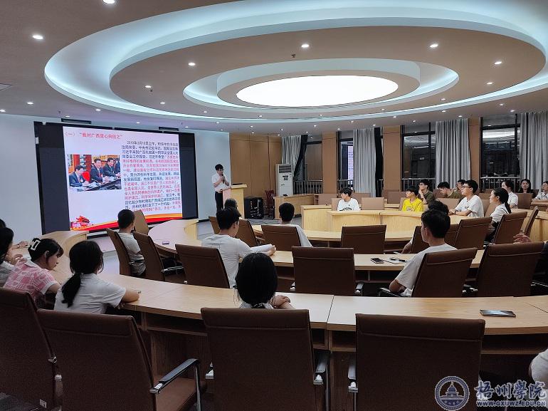 6月22日晚,电子与信息工程学院2022届毕业生党员主题教育活动在明科楼k1108会议室举行,学院党委书记邓小林以《深入学习贯彻习近平总书记视察广西时的重要讲话精神,踔厉笃行向未来》为题,给毕业生党员上最后一次党课。