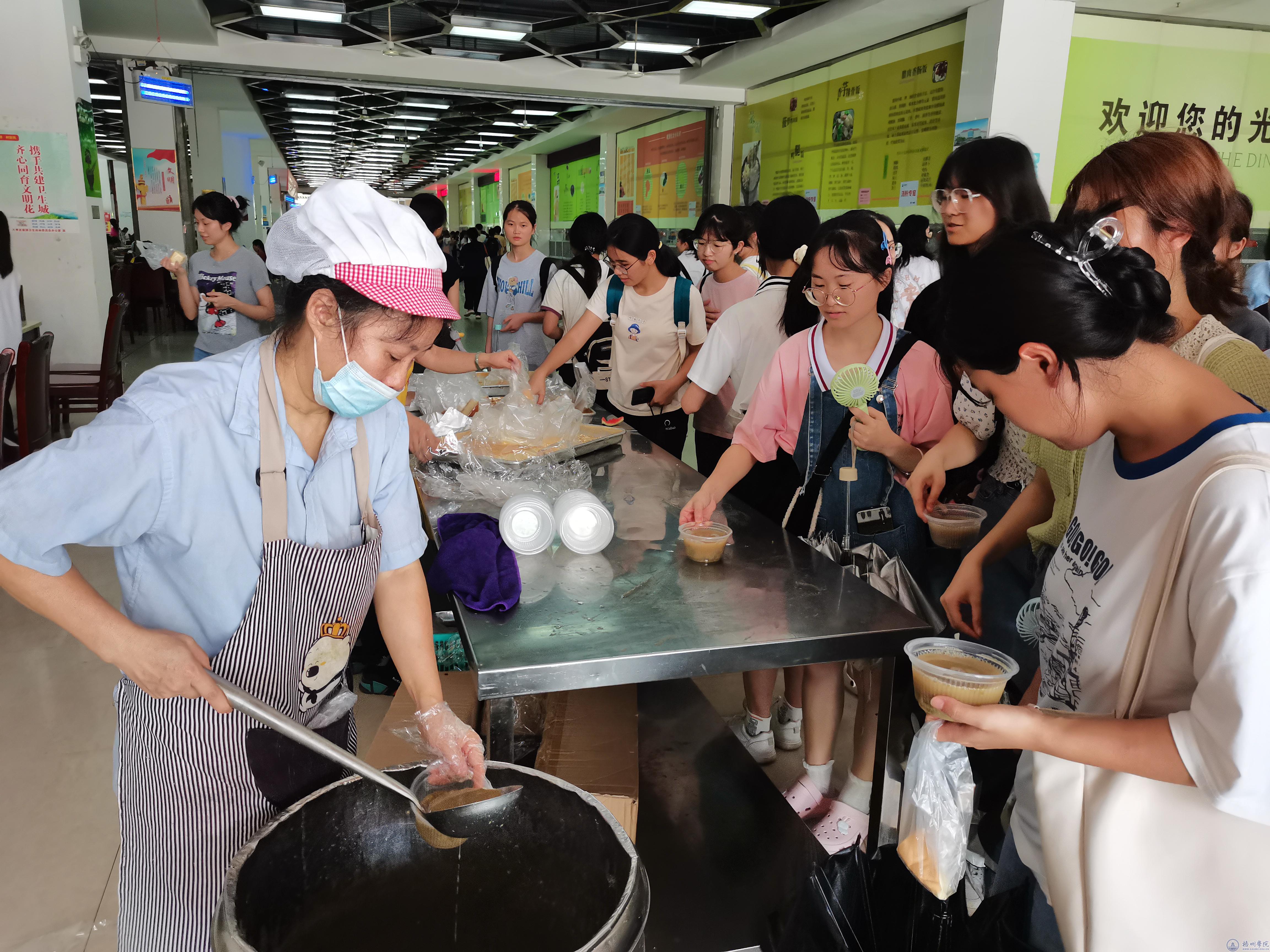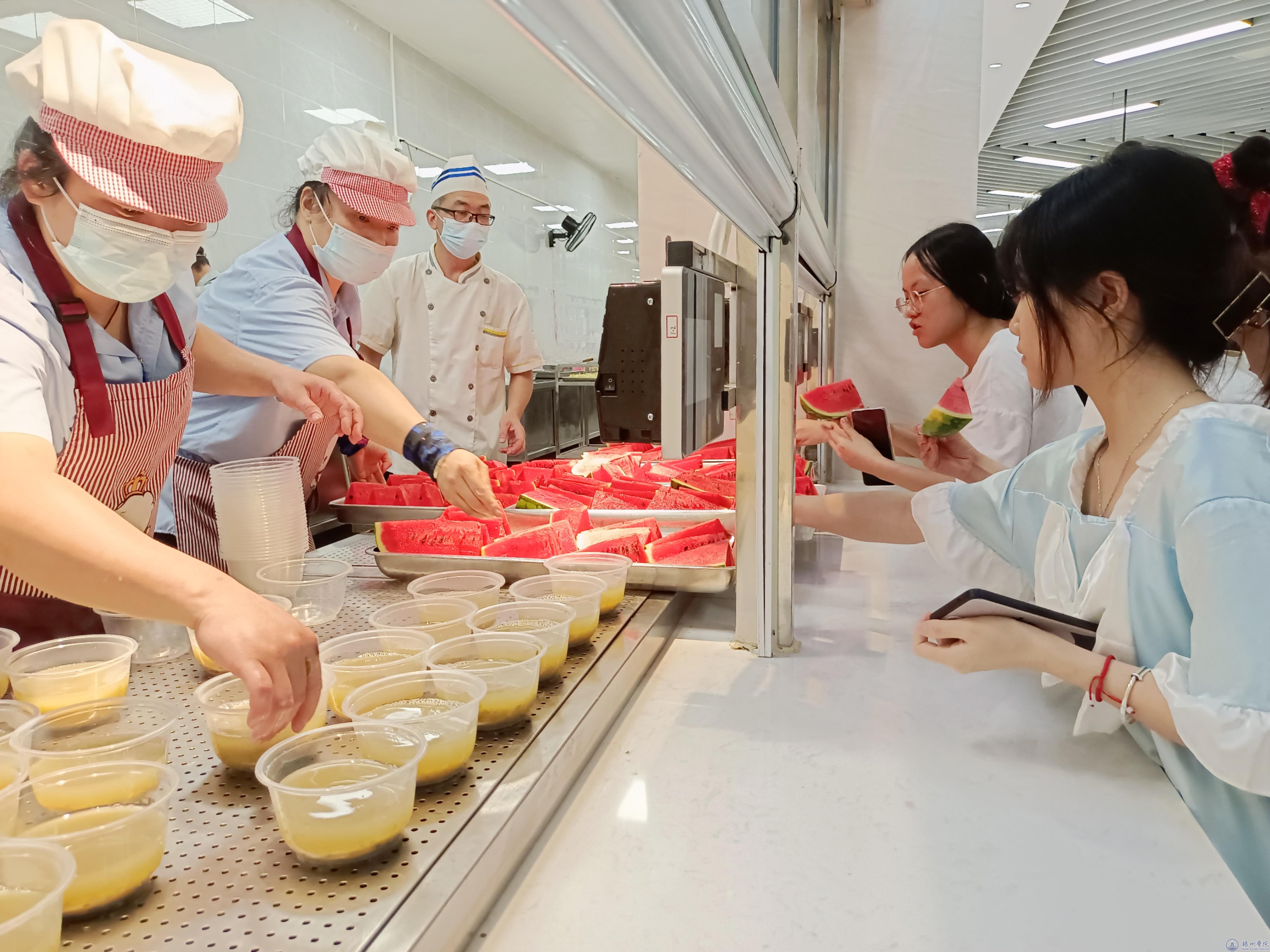 6月24日中午,学校开展“欢送2022届毕业生——食堂免费赠送食品活动”,分别于各食堂设立摆点为2022届毕业生免费送出冰冻西瓜、绿豆糖水、红枣糕、香葱咸蛋糕、罗汉果菊花茶共4000多份。