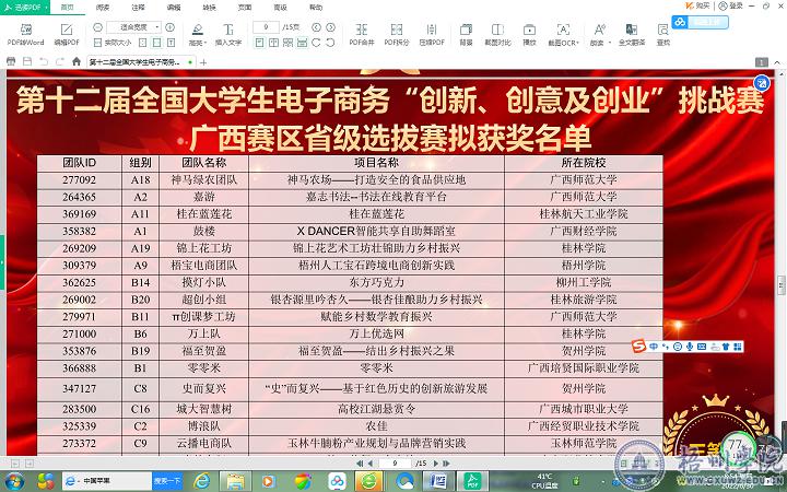 6月18日,由全国电子商务产教融合创新联盟主办,桂林旅游学院、广西本科高校电子商务及物流管理类教学指导委员会承办的第十二届全国大学生电子商务“创新、创意及创业”挑战赛广西区赛省级选拔赛在桂林旅游学院举行。我校有4支团队晋级省级赛,其中来自商学院电子商务专业和宝石与艺术设计学院产品设计专业学生共同组成的“梧宝电商”团队获广西区赛三等奖。