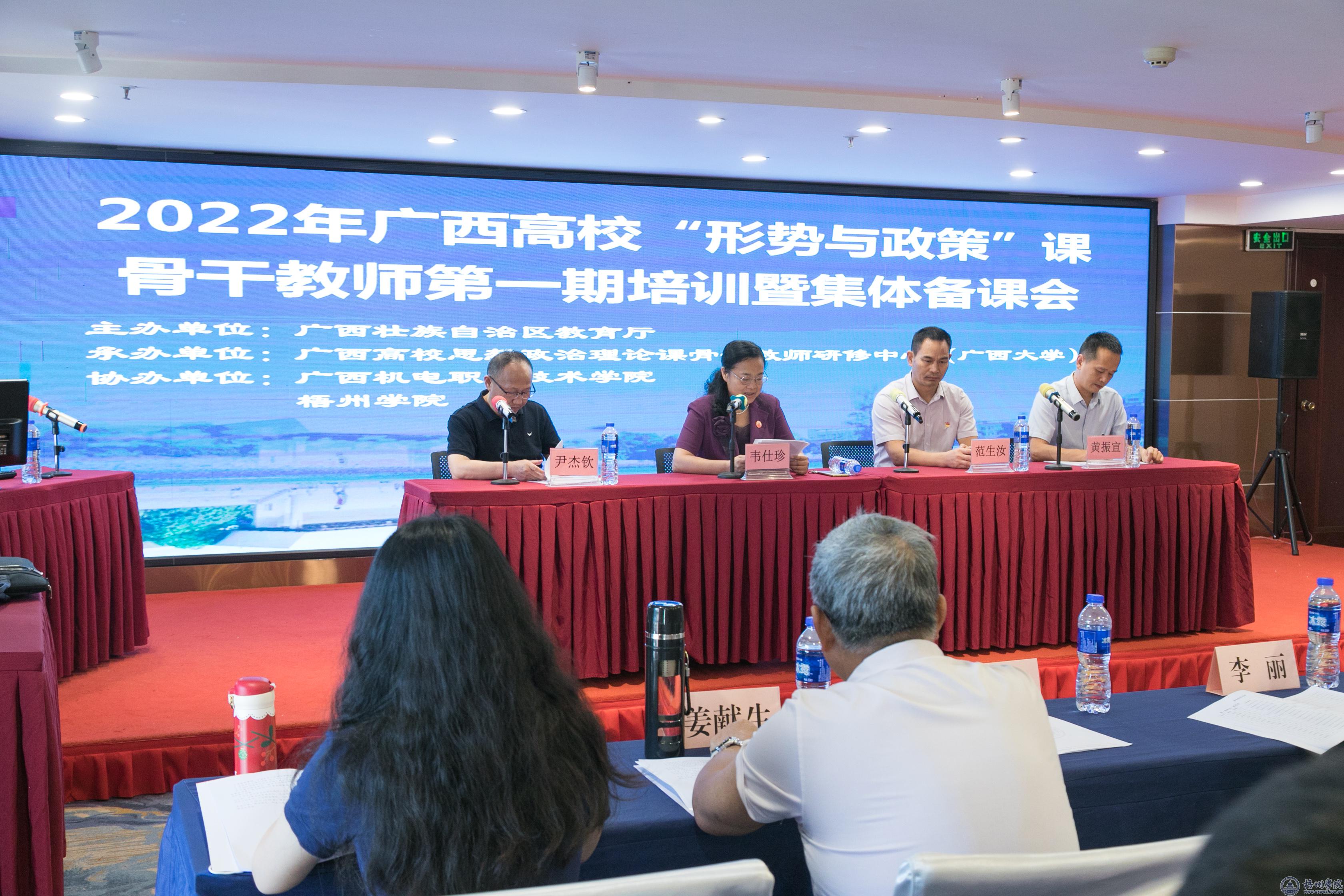 6月27日-30日,由广西壮族自治区教育厅主办,广西高校思想政治理论课骨干教师研修基地(广西大学)承办,梧州学院和广西机电职业技术学院协办的2022年广西高校“形势与政策”课骨干教师第一期培训暨集体备课会在梧州举办。学校党委书记韦仕珍、副校长范生汝出席开班仪式。