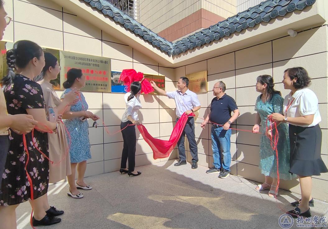 座谈结束后,在范生汝副校长和与会领导见证下,我校马克思主义学院分别与梧州市第一实验小学、梧州市中小学生示范性综合实践基地签订了合作共建协议,并举行了梧州学院教学科研实习基地、梧州市大中小学思政课一体化建设共建校的揭牌仪式。