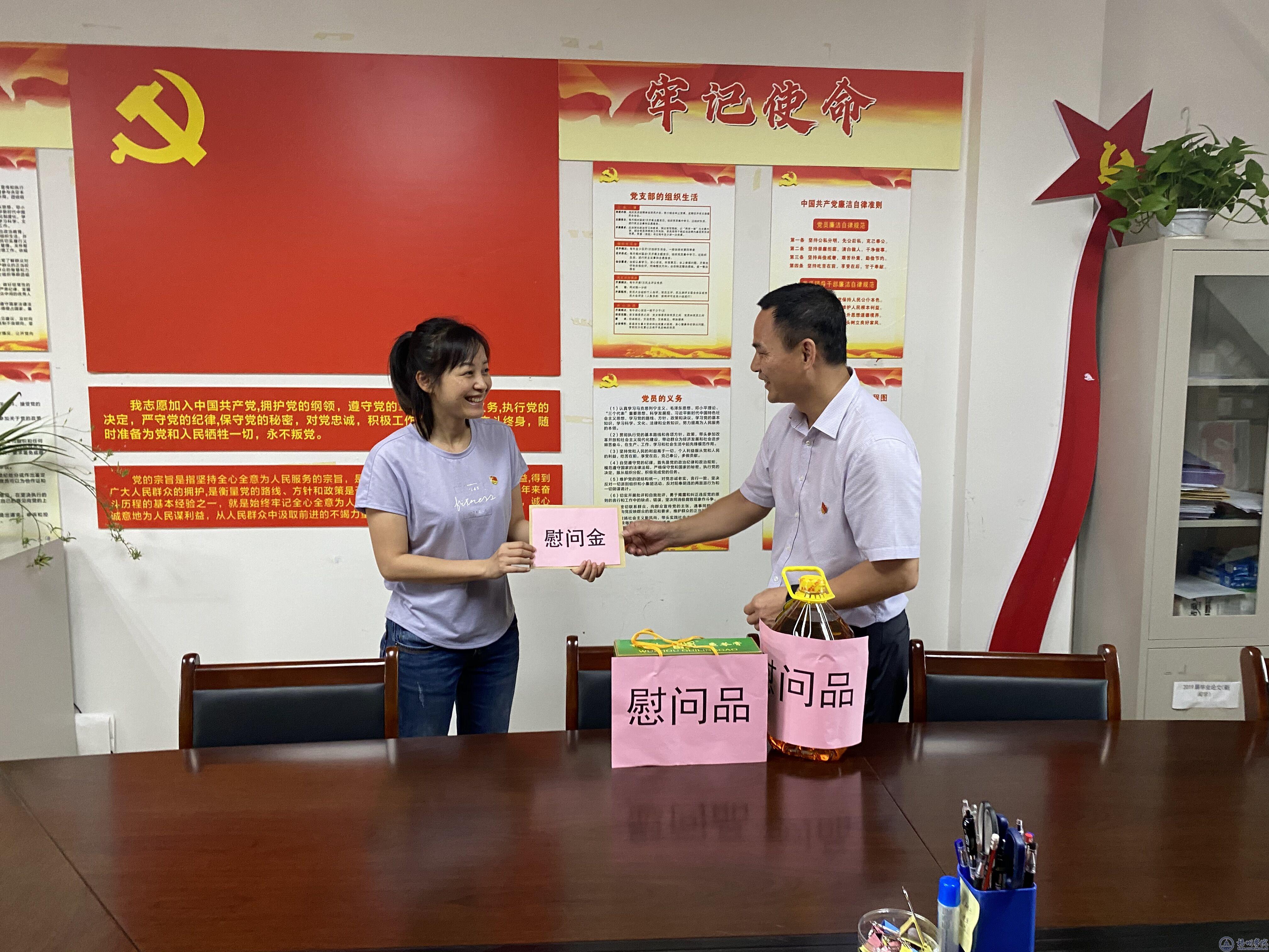 副校长范生汝慰问文学与传媒学院教师党员韦云霞(拍摄:曹旭)