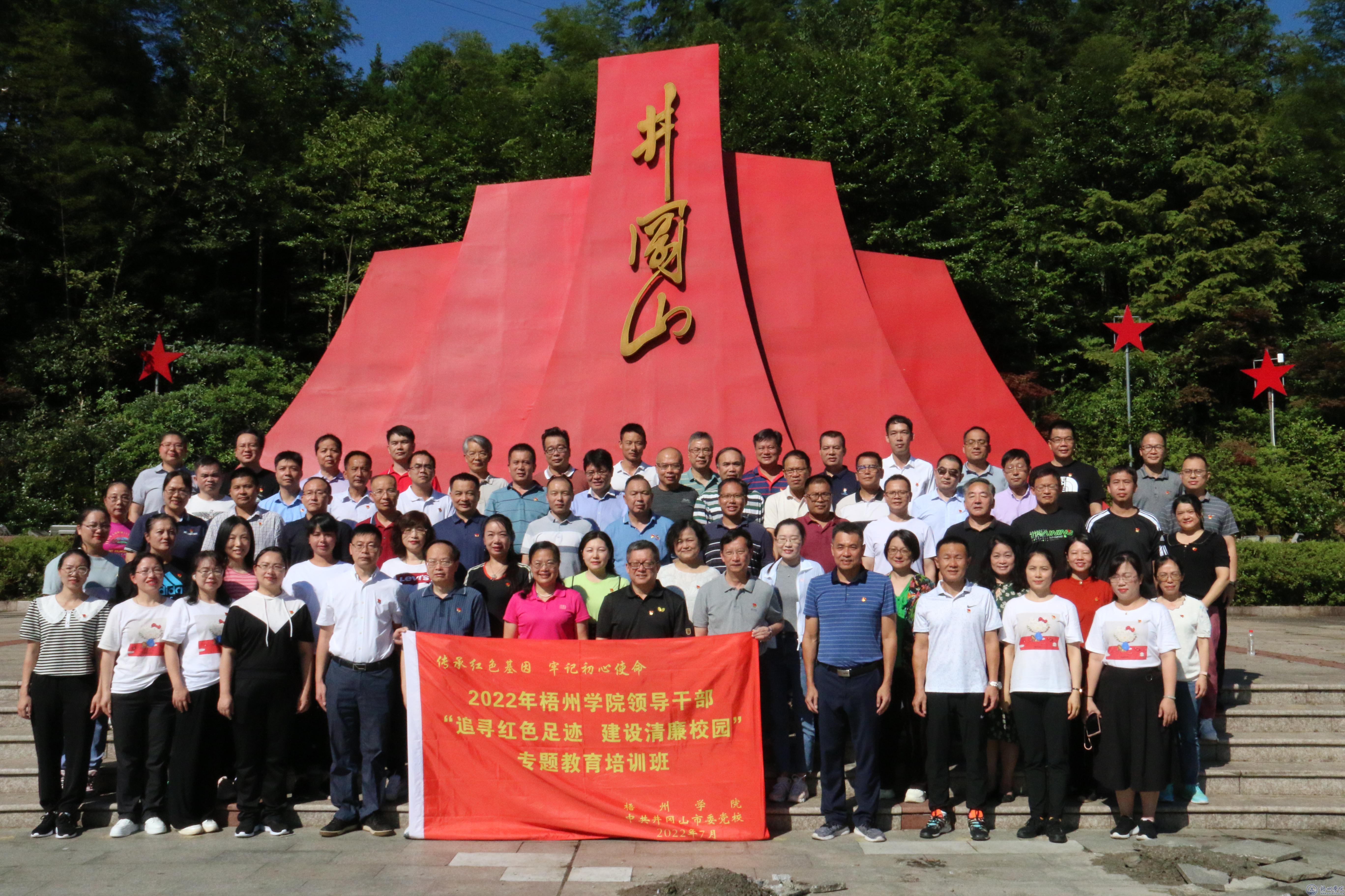 2022年7月10日-14日,我校在井冈山举办2022年领导干部“追寻红色足迹 建设清廉校园”专题教育培训班,学校领导韦仕珍、杨奔、梁业华、麻新纯、宾月景以及学校中层干部共70人参加了专题培训。