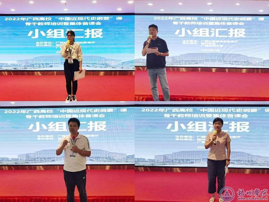 结业典礼上,广西医科大学李森、广西警察学院黄聪、右江民族医学院左佐垄川、玉林师范学院梁玉梅等4位老师作为小组代表,对培训班期间各小组的交流讨论等学习情况进行汇报。