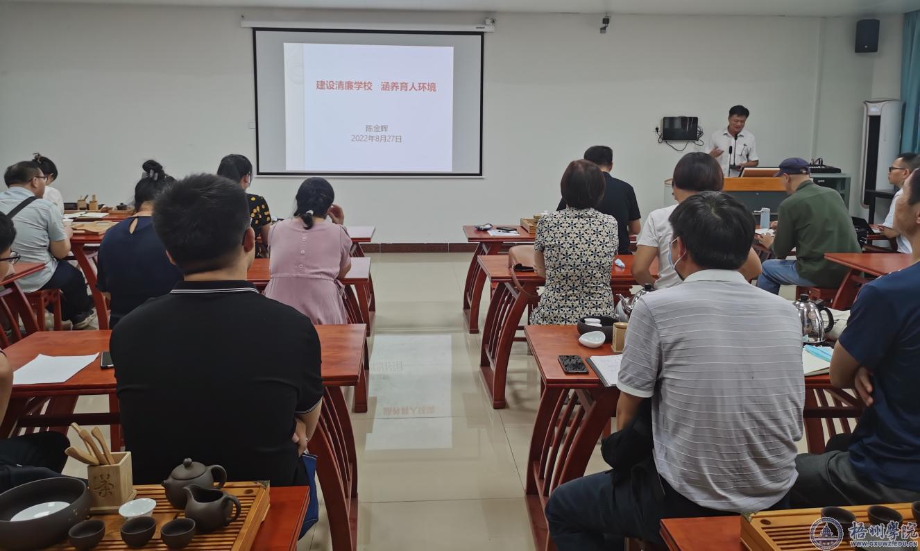8月27日下午,食品与制药工程学院召开建设清廉学校专题学习会,学院党委书记陈金辉以《建设清廉学校 涵养育人环境》为题,为全体教职工上了一堂生动的清廉教育课。