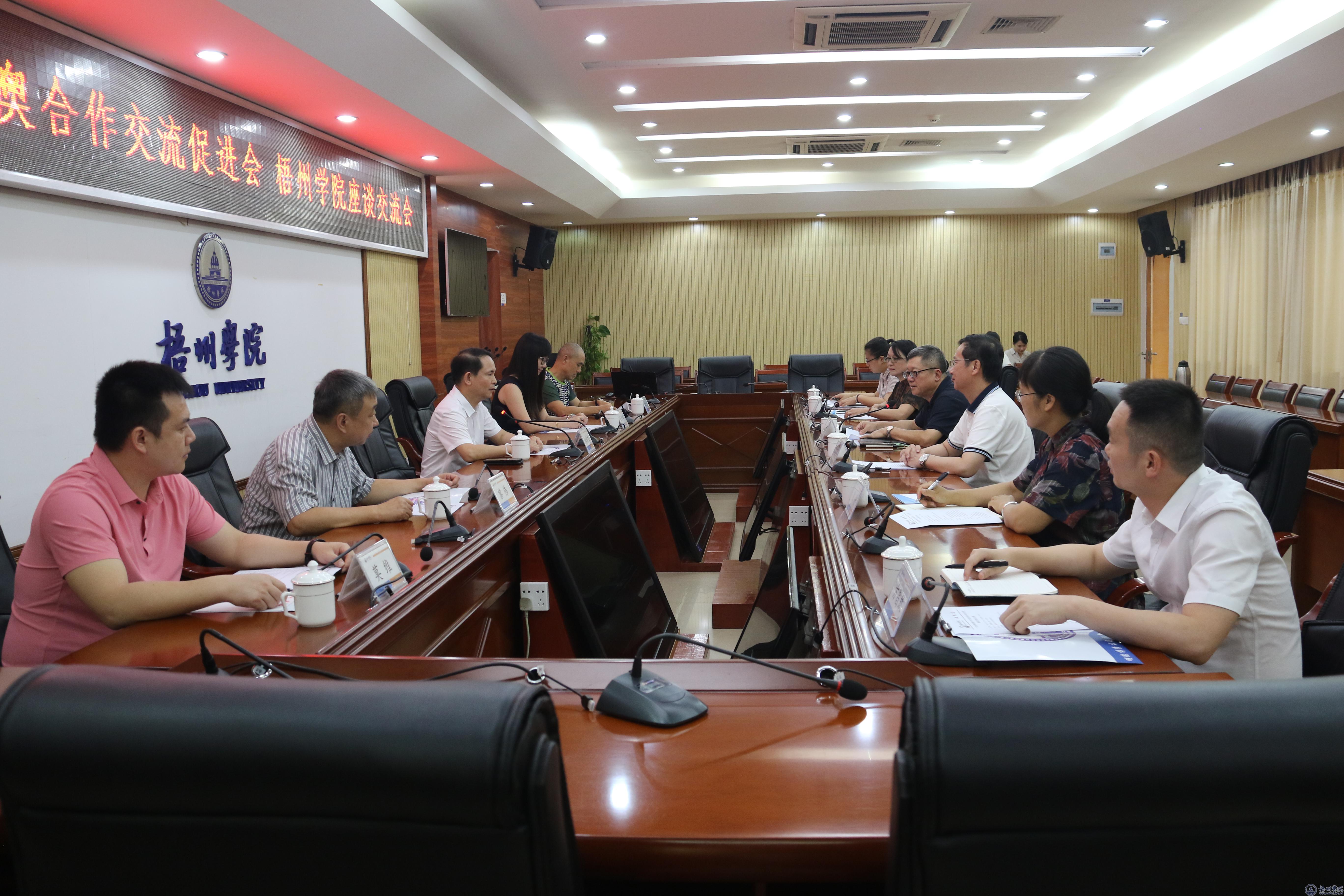 双方在明理楼八楼第一会议室召开座谈交流会。会上,杨奔介绍了学校办学历史及特色。杨奔表示学校积极落实广西教育“东融”战略,与广东、深圳等大湾区高等教育先行地区高校建立了良好合作基础。学校领导带队到广东访企拓岗,为毕业生拓宽就业渠道。希望与促进会加强沟通与交流,强化供需对接,发挥双方的资源优势,在文化交流、产学研人才培养、大学生就业等方面深度合作。林沛文介绍了广西桂粤港澳合作交流促进会的成立、会员发展、取得的成果等方面情况,他表示粤港澳大湾区建设正如火如荼,梧州学院毗邻广东,具有明显的地域优势,希望以此次交流学习为契机,加强沟通,发挥促进会平台作用,在文化交流、校园建设等方面深度合作,实现合作共赢、共同发展。