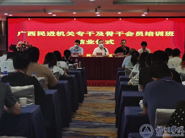 我校承办的广西民进机关专干及骨干会员培训班在梧州丽港酒店举办。9月5日,举行培训班开班仪式,自治区人大常委会副主任、民进广西区委会主委杨静华,我校党委书记韦仕珍,梧州市副市长、民进梧州市委会主委苏颖,民进广西区委会一级巡视员蒋庆霖,民进广西区委会常委、广西大学化学化工学院副院长秦祖赠,以及我校党委统战部、管理学院主要负责人等出席开班仪式。开班仪式由民进广西区委会副主委、秘书长丘映含主持。