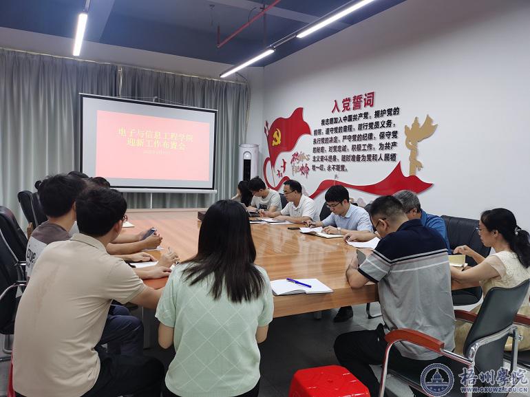 9月19日上午,电子与信息工程学院在明科楼1204会议室召开迎新工作布置会,全体学院领导、办公室主任、分团委副书记、新生辅导员和新生班主任等参加会议,会议由党委副书记黎国华主持。