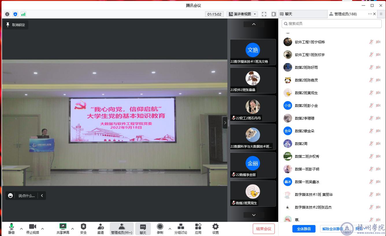 9月18日,大数据与软件工程学院在线上召开2022级新生入学教育大会,学院领导、各专业教研室主任、辅导员、新生班主任及2020级全体新生出席本次会议。