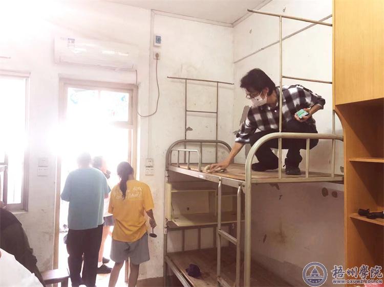 为给宝艺学院2022级新生打造一个安全、卫生、温馨的住宿和生活环境,9月20日至22日,宝艺学院师生开展了一场火热的创建“温馨家园”行动。学院组成志愿者服务队, 师生一起齐力上阵,对宿舍天花板、墙面、地面、洗手池、卫生间以及门窗进行了全方位的卫生清理,用墙纸对墙面进行了粘贴装饰,对宿舍的风扇、空调、洗衣机等设备进行排查,对存在损坏和安全隐患的设备进行了分类统计和报修。 [图/文:钟海明 ]