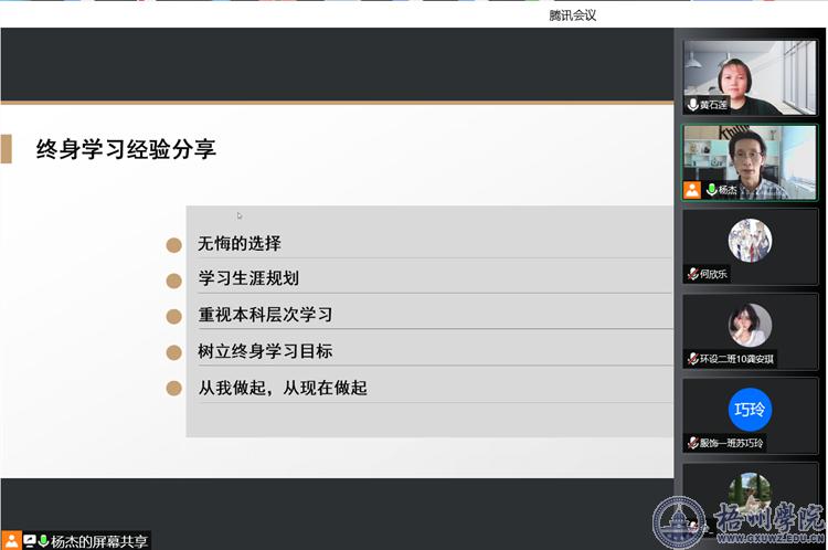 9月24日下午,宝艺学院通过线上视频的方式为2022级新生开展“终身学习,受益无穷”专题讲座。本次讲座邀请了杨杰博士进行讲授,讲座由学院党委副书记黄石莲老师主持,2022级全体新生参加讲座。