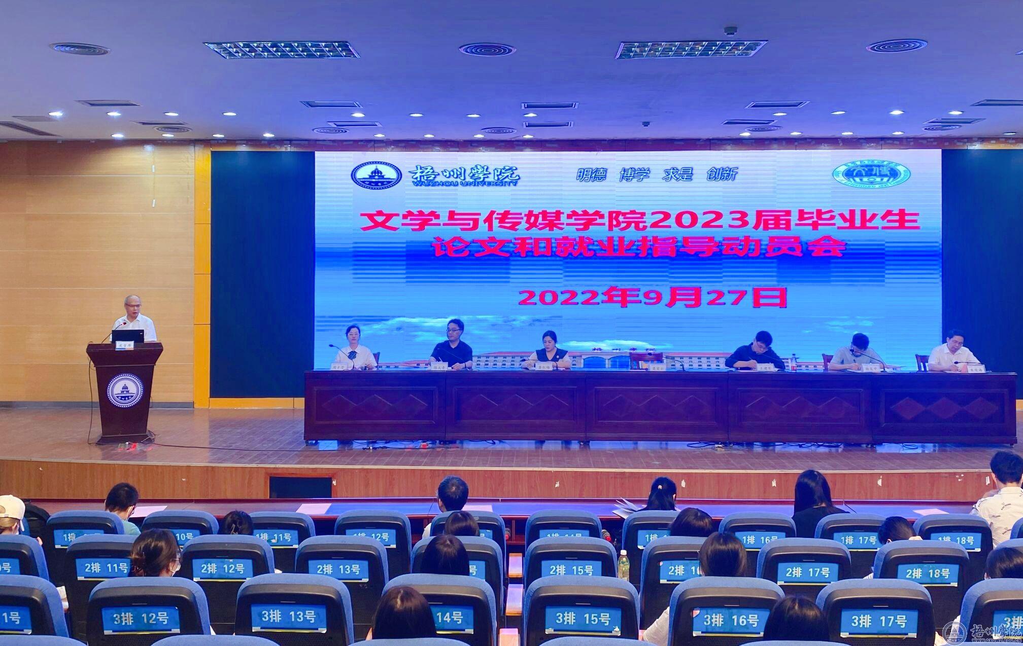 9月27日,文学与传媒学院在明理楼一楼学术报告厅召开2023届毕业生毕业论文写作和就业指导动员会。