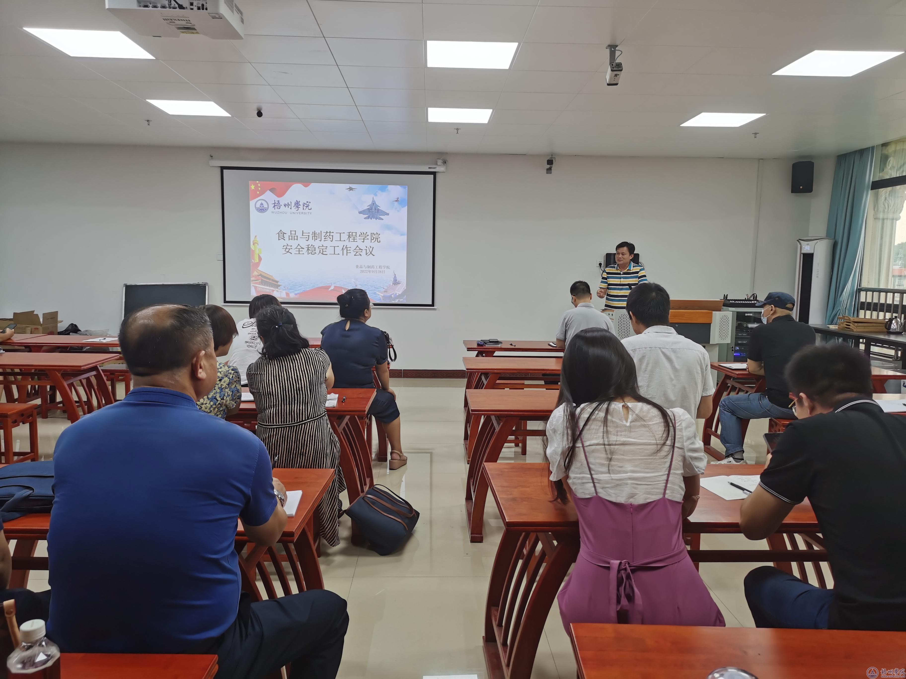 9月28日下午,食品与制药工程学院在明科楼1512室召开安全稳定工作会议,就确保校园安定、师生安全等方面进行工作部署。学院的全体教职员工参加了会议。