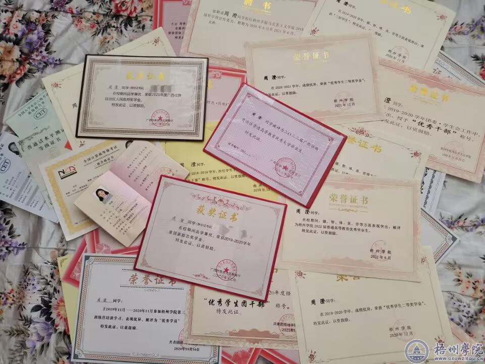 2022年5月,周澄被评为2022届广西壮族自治区普通高等教育优秀毕业生,但她对这个“优秀”却有别样的看法。“优秀的定义是广泛的,我只是刚好身上有一部分品质符合优秀毕业生的标准,每个人都是优秀的,只是每个人的闪光点不同,所以优秀的地方也不同。”