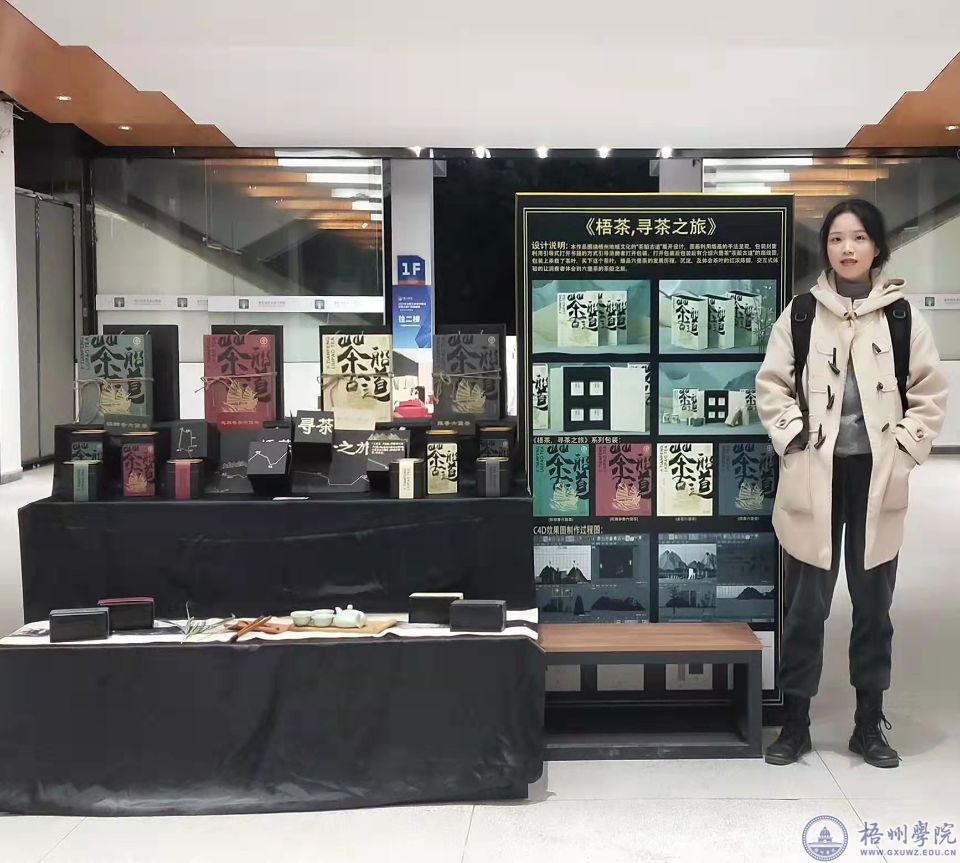 另外,陈裕炫的设计作品《寻茶之旅》在第三届中国(广西)六堡茶包装设计大赛中荣获金奖。而此时,由陈裕炫、牛朝阳参与设计的梧州学院2022级新生录取通知书仍在进行中。