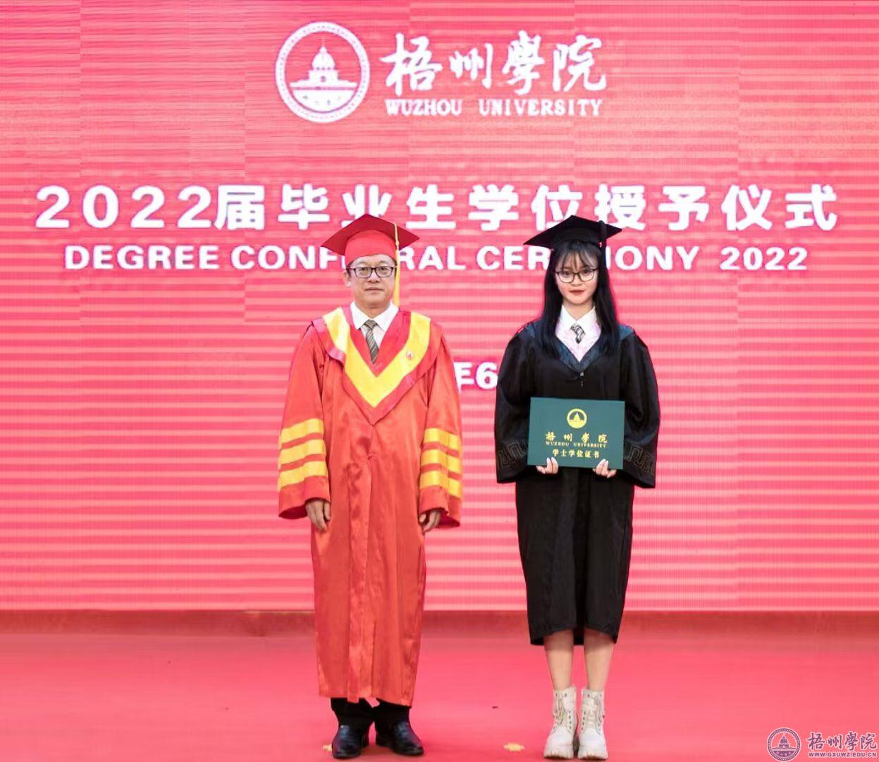杨琴毕业典礼和杨奔校长合影