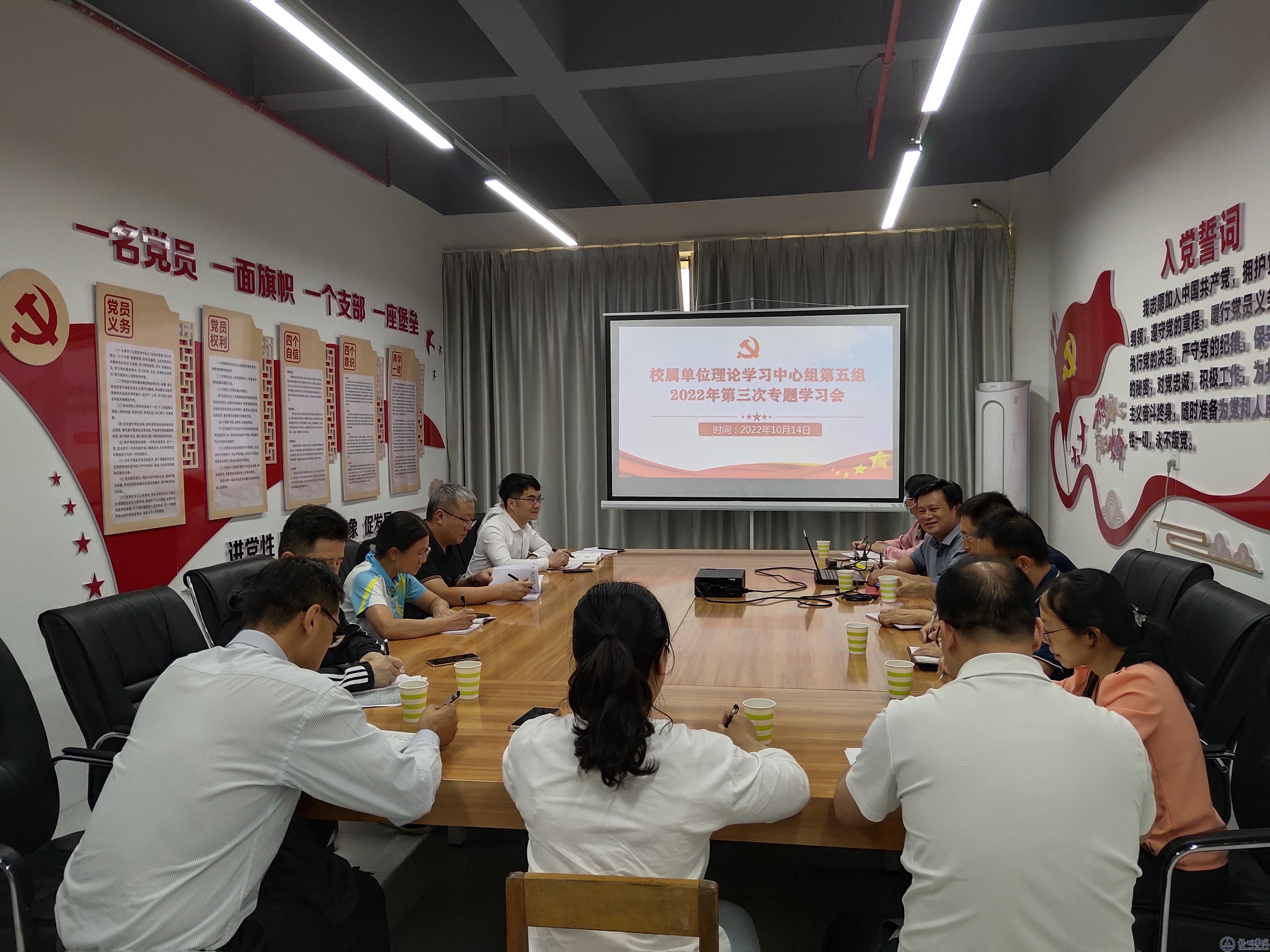 10月14日下午,校属单位理论学习中心组第五组在明科楼电信学院党员活动室(K1204)召开2022年第三次专题学习会,由机械与资源工程学院、食品与制药工程学院、大数据与软件工程学院、电子与信息工程学院组成的第五组成员参加会议。