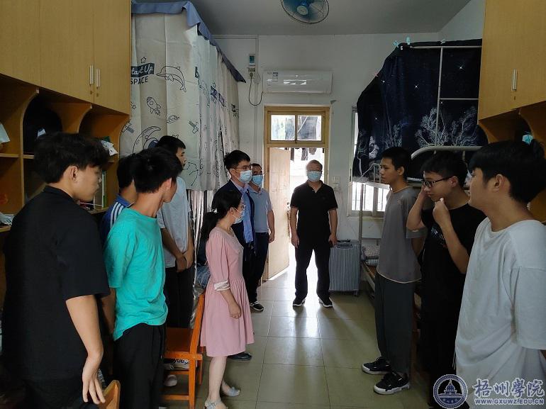 同时,为提高同学们的宿舍环境卫生意识,加强作风建设,严守纪律规矩,提高安全意识,由学院领导班子对我院学生宿舍进行了走访检查,检查内容包括宿舍内部卫生、宿舍用电安全、宿舍楼道公共区域、阳台、卫生间等方面。检查过程中,学院领导对同学们表达了关心,询问同学们在日常生活和学习中的情况,听取同学们在宿舍方面的意见和问题。