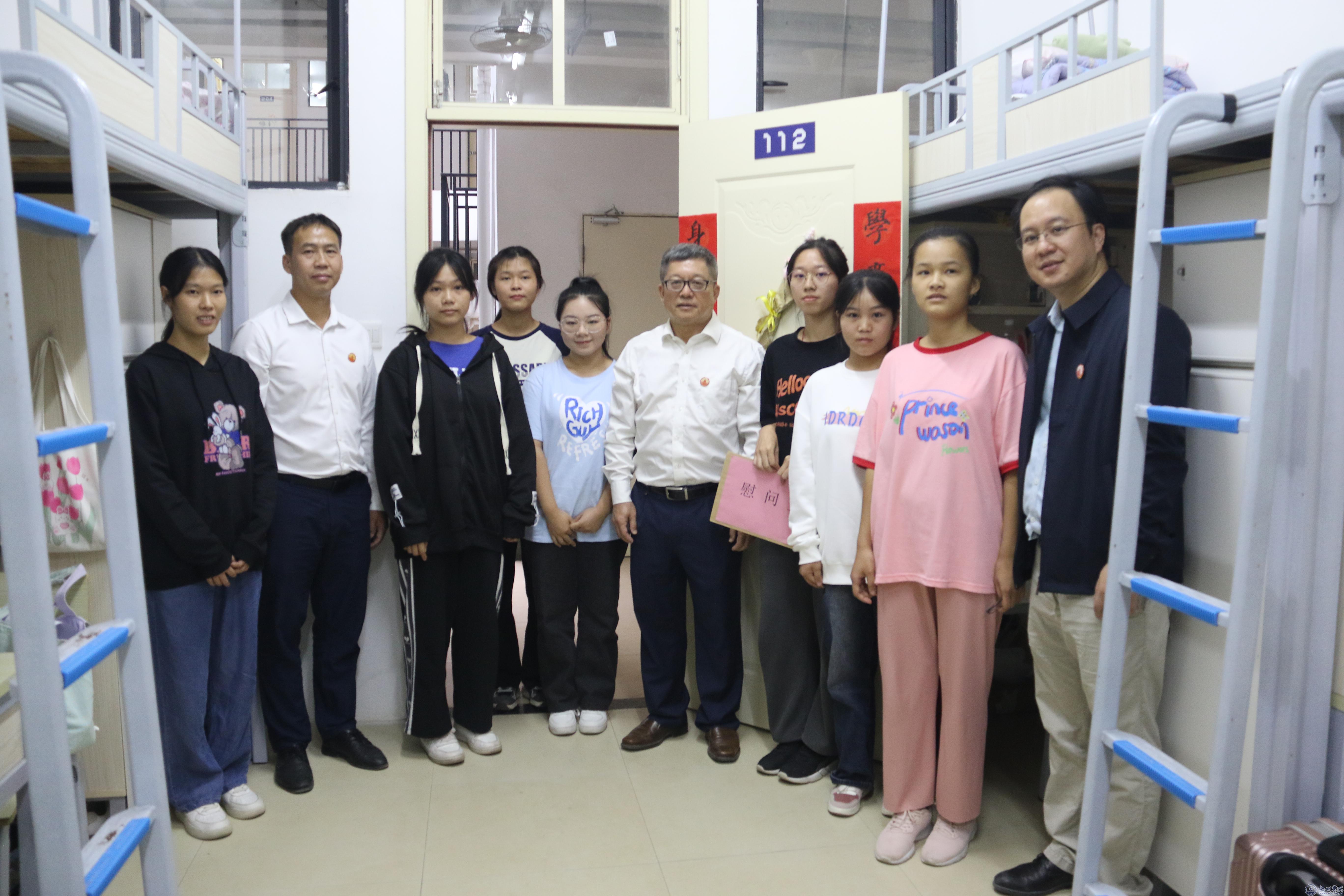 10月19日下午, 杨奔校长带领党委宣传部、学生工作部(处)和教师教育学院负责人组成的走访慰问组,深入学生宿舍慰问教师教育学院两名家庭经济困难学生。