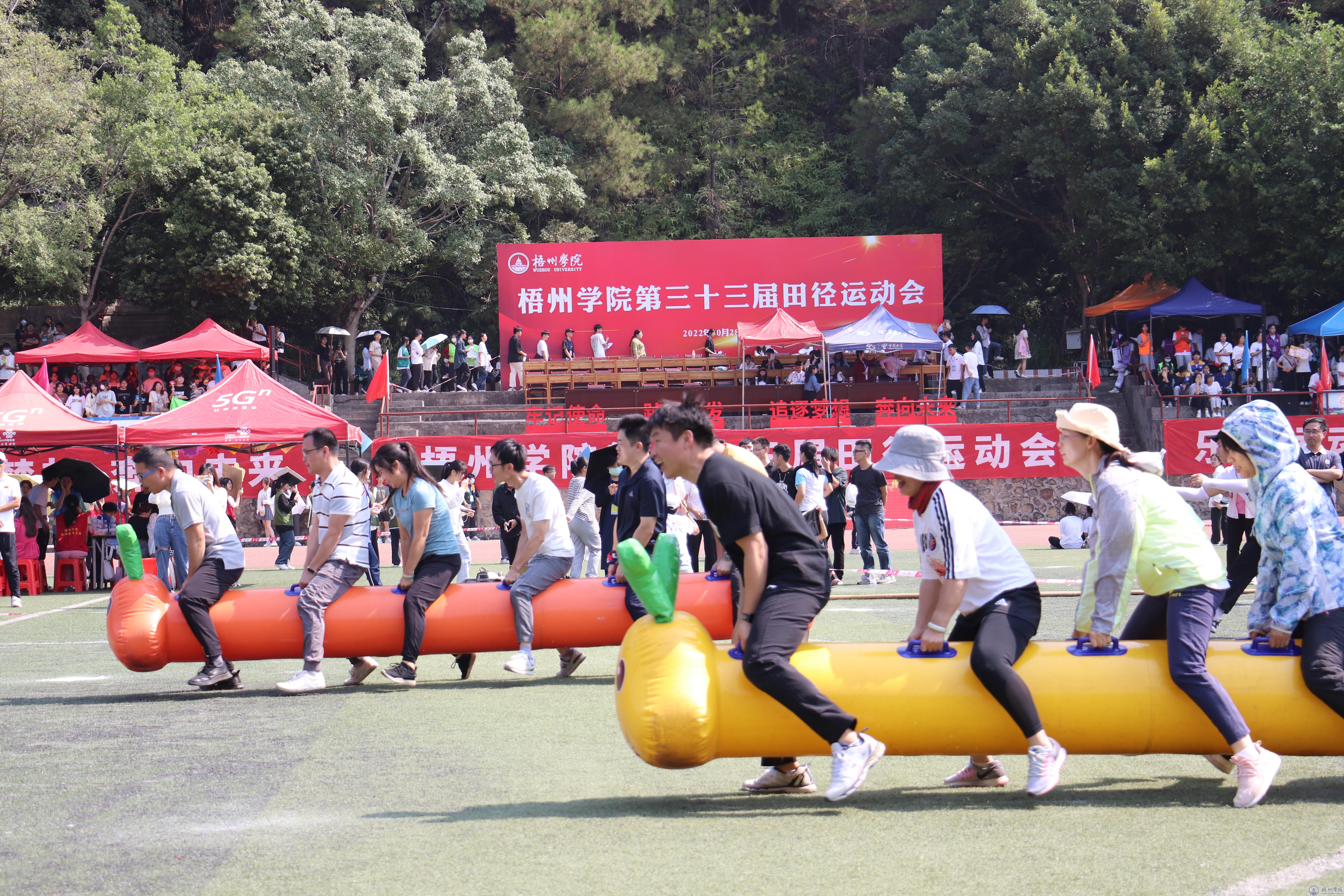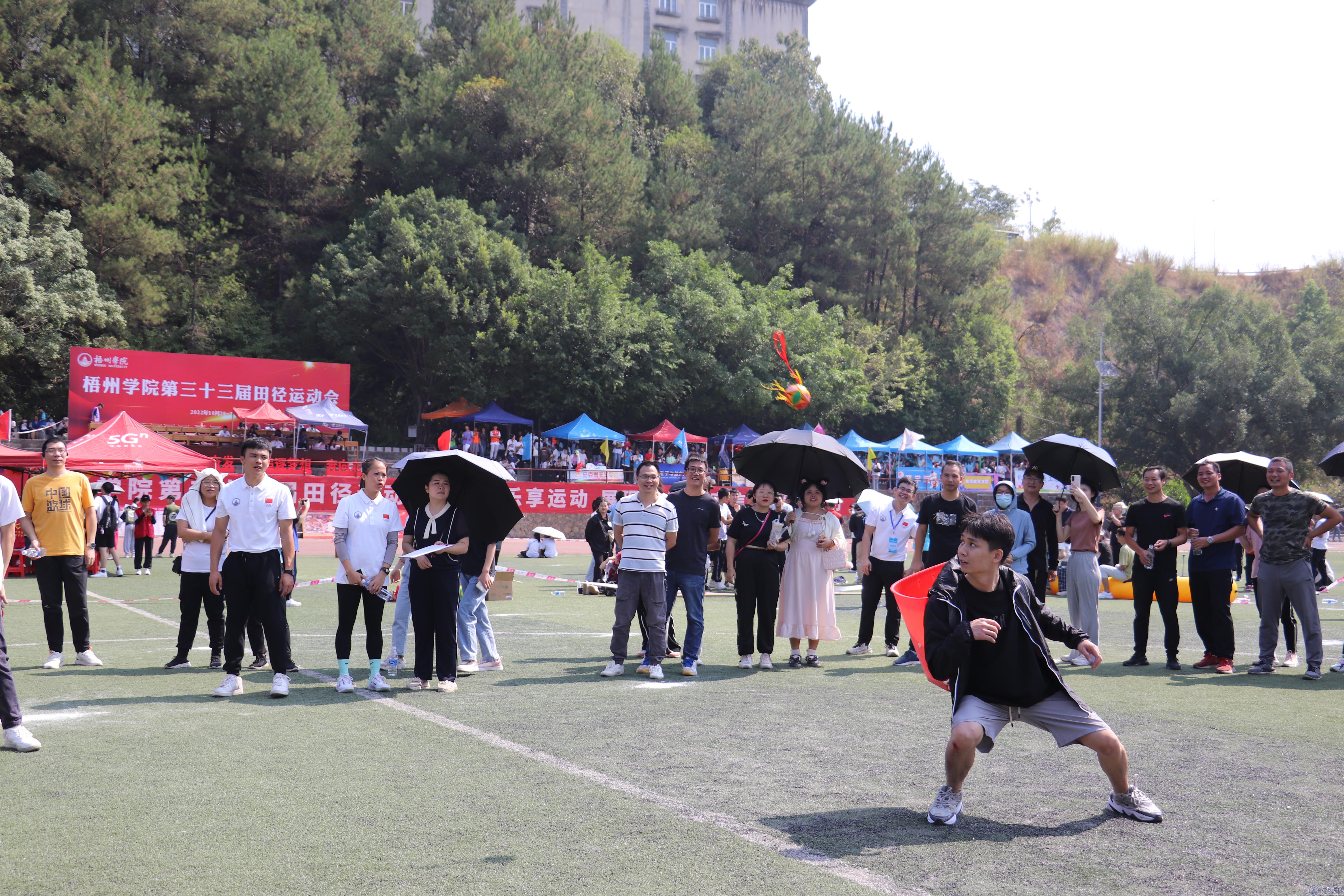 为进一步丰富教职工精神文化生活,增强身体素质和团队凝聚力,营造积极健康向上的工作氛围。10月28日上午,梧州学院第三十三届运动会教职工趣味运动比赛在足球场顺利举行。各二级工会踊跃参加、积极响应,16支参赛队伍,160余名运动员参加比赛。