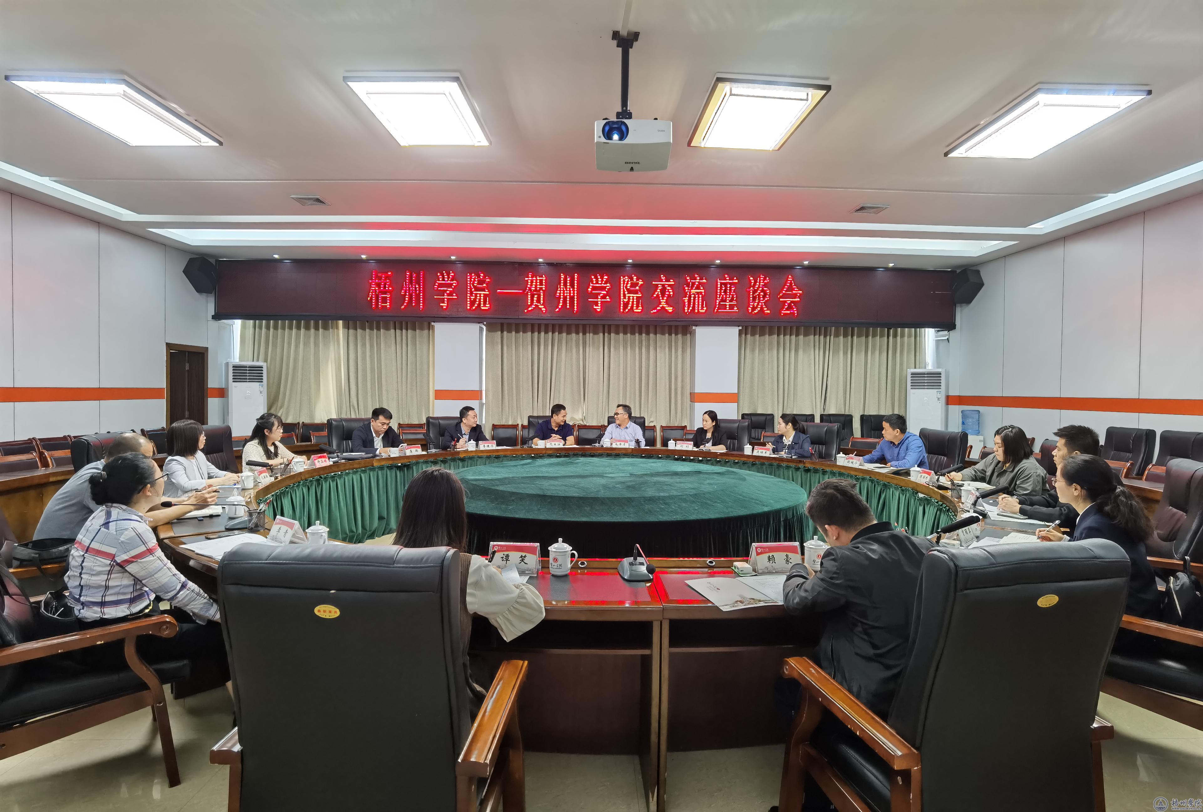 贺州学院党委副书记毛芳才热情接待了范生汝一行。在座谈交流会中,毛芳才副书记介绍了贺州学院的历史沿革及办学特色,范生汝副校长介绍了我校基本情况以及办公室工作、学生工作的开展情况。双方部门负责人分别就办公室事务管理、大学生心理健康教育、学生宿舍日常管理等具体做法和经验进行了深入的交流。