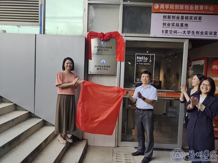 学院书记冀宁、副书记陈兴一同为心悦团体辅导工作室揭牌。揭牌仪式结束后,开展心理健康教育专题案例研讨会。