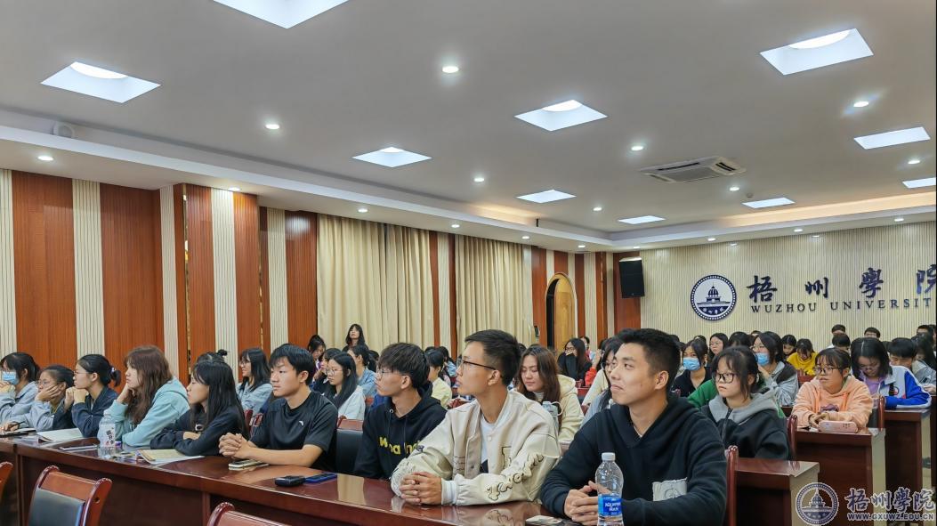 黄俊副部长向师生们分享了公务员(选调生)招录及苍梧县急需紧缺人才政策,并以“四个不同”区分了选调生与普通公务员的差别,进一步分析了促进高校毕业生到基层就业的相关政策,并提醒有意向考选调生的同学们要注意报名的相关事项。他鼓励同学们毕业后报考选调生,到基层就业、锻炼自己。叶灿培校友讲述了自己的成长经历,勉励同学们努力学习,励志成才。