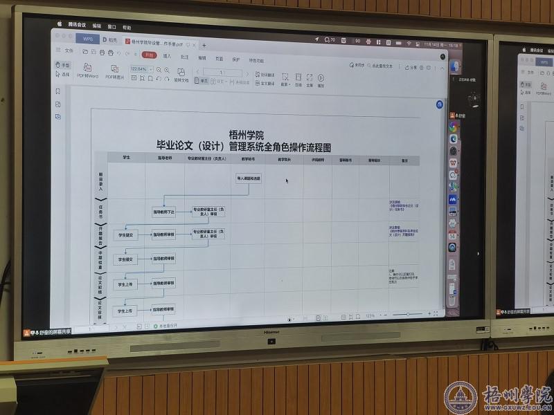 会上,技术人员对本科学生毕业设计(论文)管理系统的主要功能和操作流程做了整体介绍,并分别以指导教师、教学秘书、教研室负责人等角色演示了毕业设计(论文)系统的操作步骤和注意事项。系统支持从选题、任务书下达、开题、论文评审、答辩、成绩评定到毕业设计(论文)存档全程信息化管理。