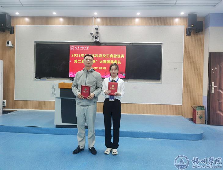 由广西教育厅指导、广西本科高校工商管理类教学指导委员会主办的第二届“金课”比赛于11月5日在南宁师范大学举行。本次比赛主题为“思政教育走进工商管理类课堂”,经过网络评审和现场比赛,我校管理学院王泽兵老师和莫小惠老师在激烈的竞争和角逐中脱颖而出,其中王泽兵老师荣获三等奖、莫小惠老师荣获优胜奖。