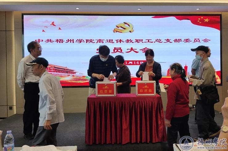 10月14日上午,中共梧州学院离退休教职工总支部委员会召开全体党员大会,传达学习学校党委有关文件,选举产生第一届离退休教职工党总支委员。