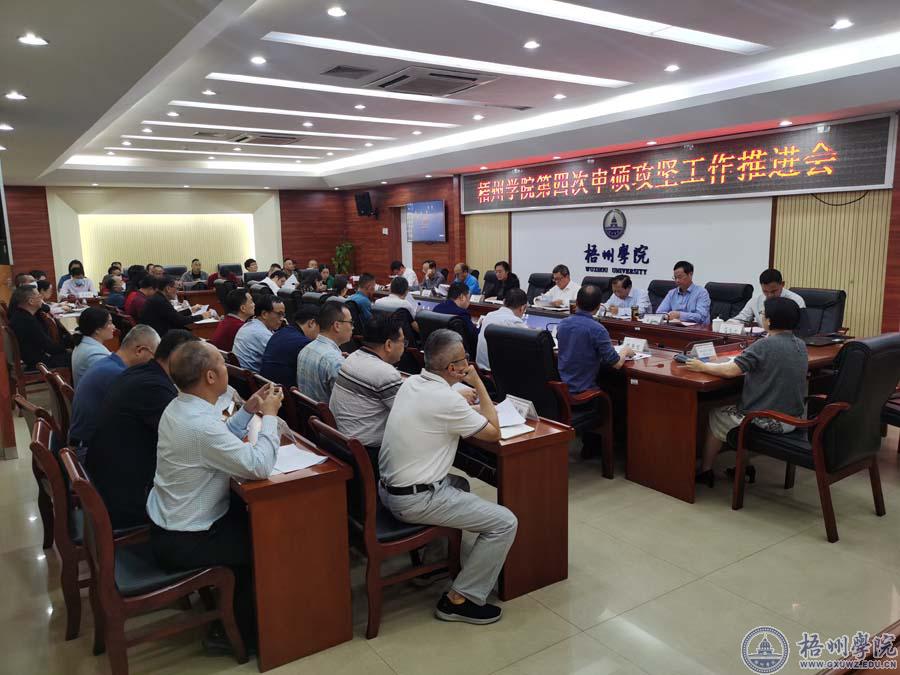 为进一步再落实再推进申硕攻坚工作,11月15日下午,学校在明理楼第一会议室召开第四次申硕攻坚工作推进会,学校领导韦仕珍、杨奔、玉振明、邱房贵、梁业华、宾月景、范生汝出席会议,各二级学院书记、院长,各部门主要负责人,硕士学位授权点学科带头人、方向带头人,发展规划处全体成员参加会议。会议由副校长宾月景主持。