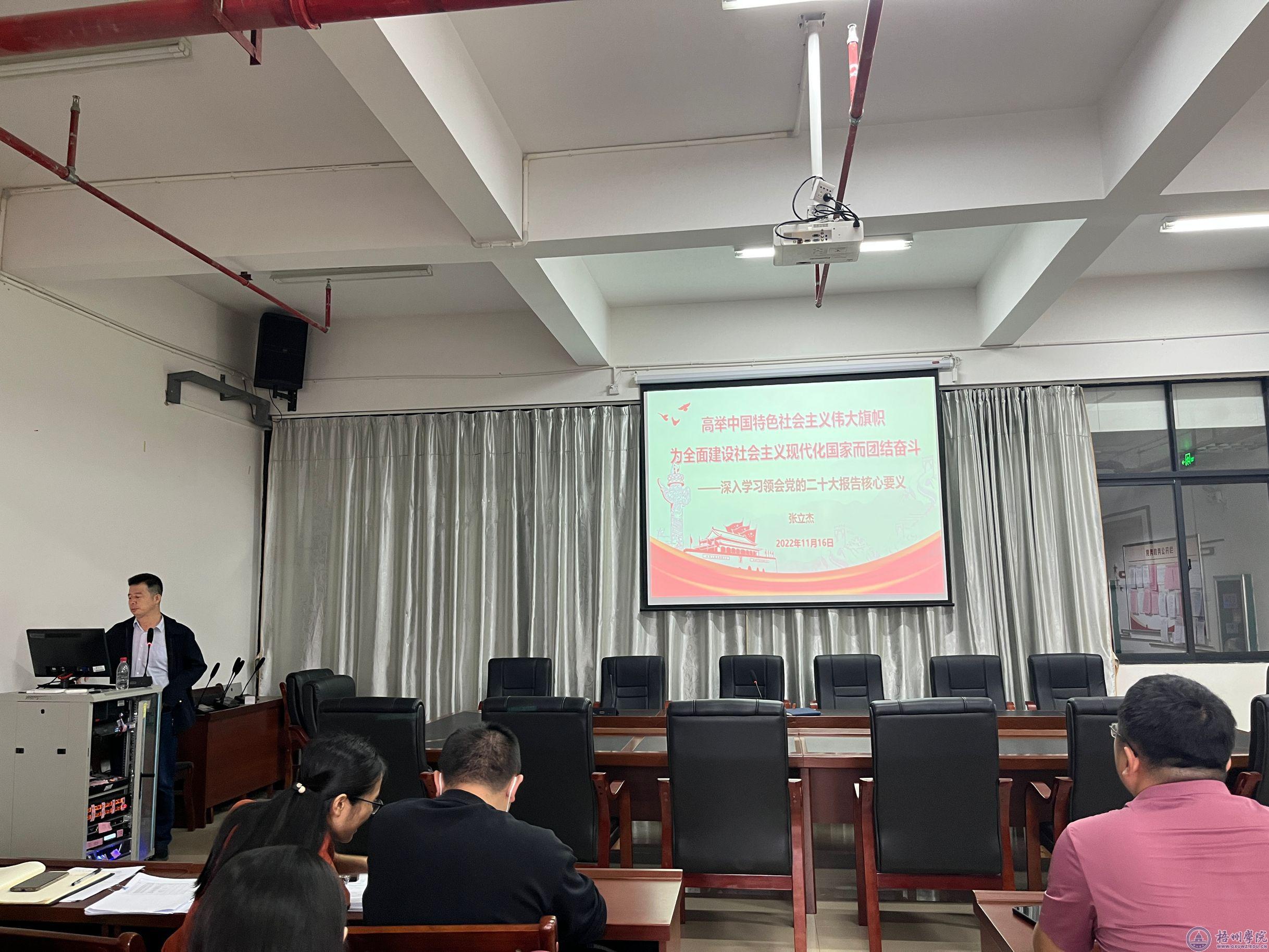 11月16日下午,机械与资源工程学院在科技楼1303开展学习党的二十大精神宣讲会。学院党委书记张立杰、党委副书记许玉婷、全体教师党员和学生代表参会。
