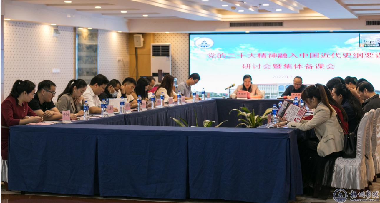 为学习、宣传、贯彻党的二十大精神,提升全区高校中国近现代史纲要教师的政治素质和教学水平,促进党的二十大精神与中国近现代史纲要课程的有效融合,11月19-20日,马克思主义学院在梧州举办了“党的二十大精神融入中国近现代纲要研讨会暨集体备课会”。学校党委书记韦仕珍出席研讨会暨集体备课会并致辞。