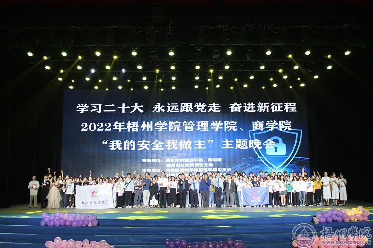 为了学习贯彻党的二十大精神,加强当代青年的安全意识,11月20日,管理学院、商学院在体育馆三楼举行“学习二十大,永远跟党走,奋进新征程”——“我的安全我做主”安全教育主题晚会。学生工作部(处)部(处)长李德华、校团委书记秦伟、管理学院党委书记冀宁、梧州市公安局网络安全保卫支队副支队长黎剑锋出席晚会。