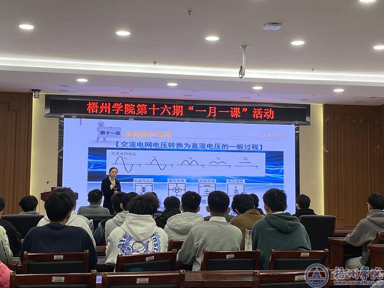 本期“一月一课”活动由电子与信息工程学院承办,郑瑶老师以《模拟电子技术》为题进行授课,课程首先通过情景导入直流稳压电源的重要性,然后以电源制作为设计任务,利用多媒体课件向学生重点讲解直流稳压电源中桥式整流电路的工作原理以及制作。课件含有丰富的图片素材和动画演示,引入了工程思想和解决工程问题的方法,对学生之后的学习很有启发。