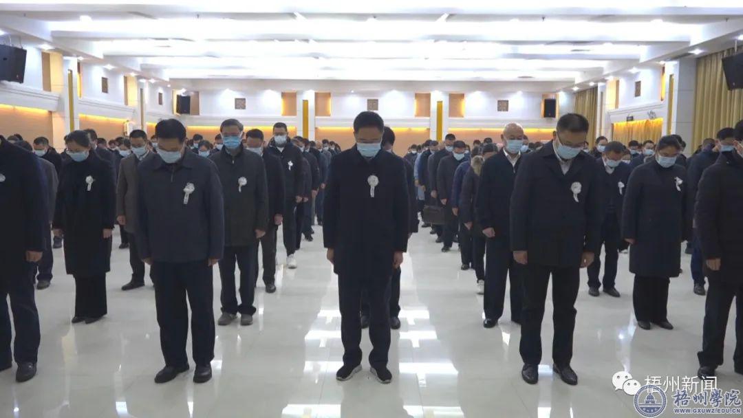 在梧州学院学术报告厅,梧州学院组织教职工代表集中收看了追悼大会现场直播,以沉痛的心情,悼念敬爱的江泽民同志。大家表示,新时代新征程,要在以习近平同志为核心的党中央坚强领导下,坚定信心、同心同德,埋头苦干、奋勇前进,为实现中华民族伟大复兴团结奋斗。