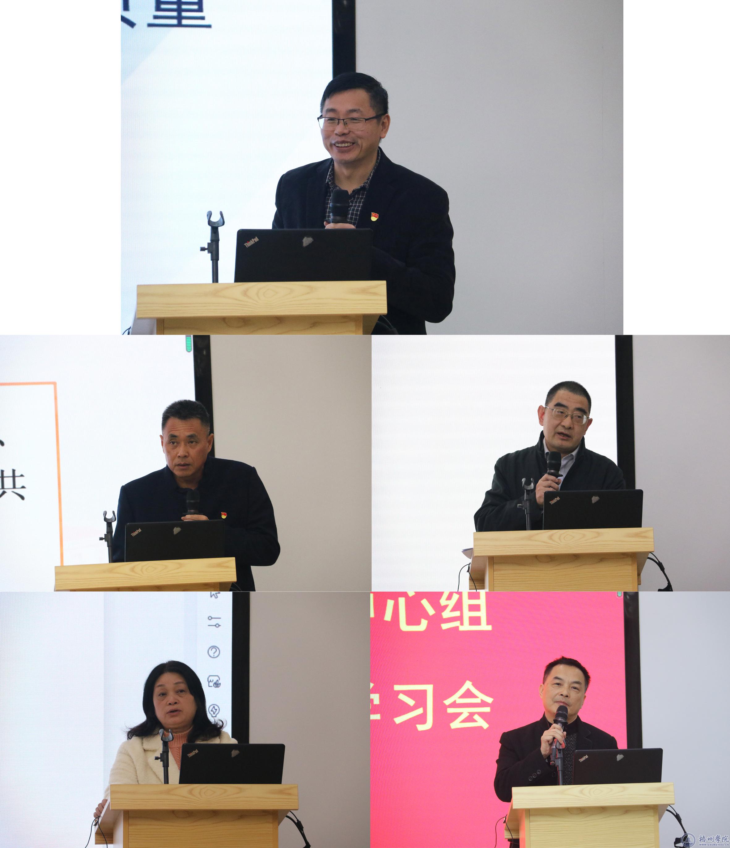学习会上,方勇、奚广生、戴继明三位同志就学校现代产业学院建设情况作介绍。方勇同志从什么是示范性产业学院、我校产业学院的建设现状、下一步建设思路进行介绍,奚广生同志介绍了六堡茶现代产业学院的办学定位、开展工作情况、下一步工作措施、存在问题,戴继明同志介绍了宝石现代产业学院的建设情况、建设规划与任务目标、探索与思考、存在困难。