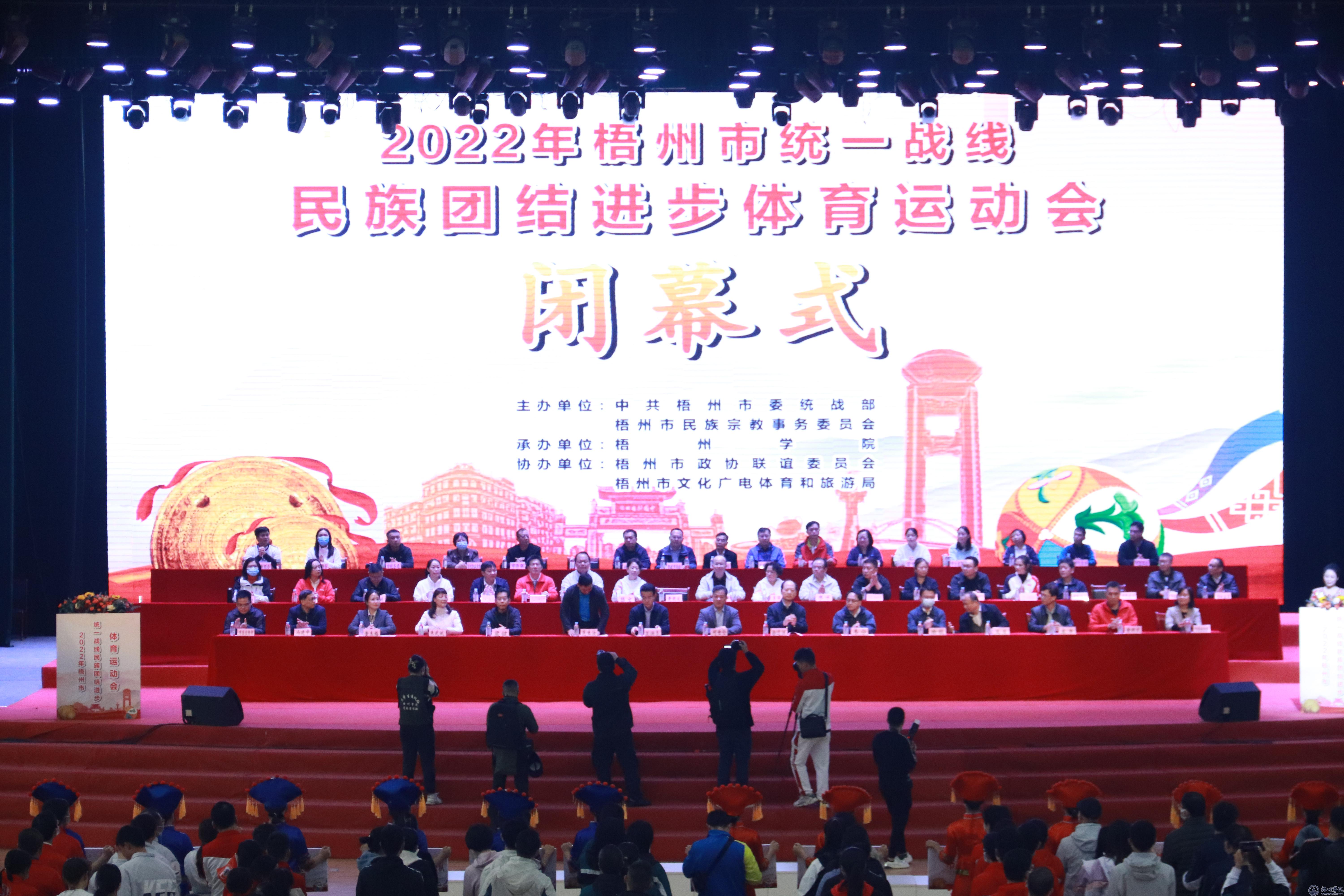 12月10日至11日,由市委统战部、市民宗委主办,梧州学院承办,市政协联谊委、市文广体旅局协办的2022年梧州市统一战线民族团结进步体育运动会在我校体育馆召开。市政协主席黄振饶,市委常委、统战部部长何世恰,市人大常委会副主任徐远洲,市政府副市长范洪亮,市政协副主席韦宁,梧州学院副校长范生汝出席开幕、闭幕式。