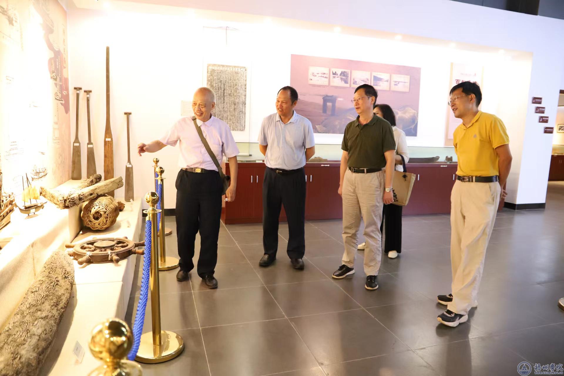 余天佑老师为前来博物馆参观的领导介绍藏品