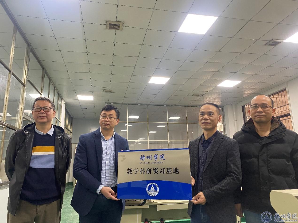 在参观过程中,了解了各个公司的发展历程、组织架构、企业文化以及研究成果等情况。参观结束后,并与企业代表座谈,就校企合作、产学研融合、学生的就业前景以及如何提升学生专业素养展开讨论。宾月景副校长为广西梧州新悦君饰品有限公司和广西嘉禾润再制造产业投资有限公司授牌“教学科研实习基地”。