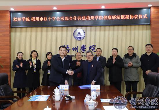2月16日上午,梧州学院与梧州红十字会医院共建健康驿站框架协议签约仪式在梧州学院明理楼八楼第二会议室举行。梧州红十字会医院院长余永铭、党委专职副书记刘凤玲、副院长郑裕明、副院长李皓,梧州学院校长杨奔、副校长玉振明、副校长范生汝出席签约仪式。签约仪式由梧州学院副校长玉振明主持。