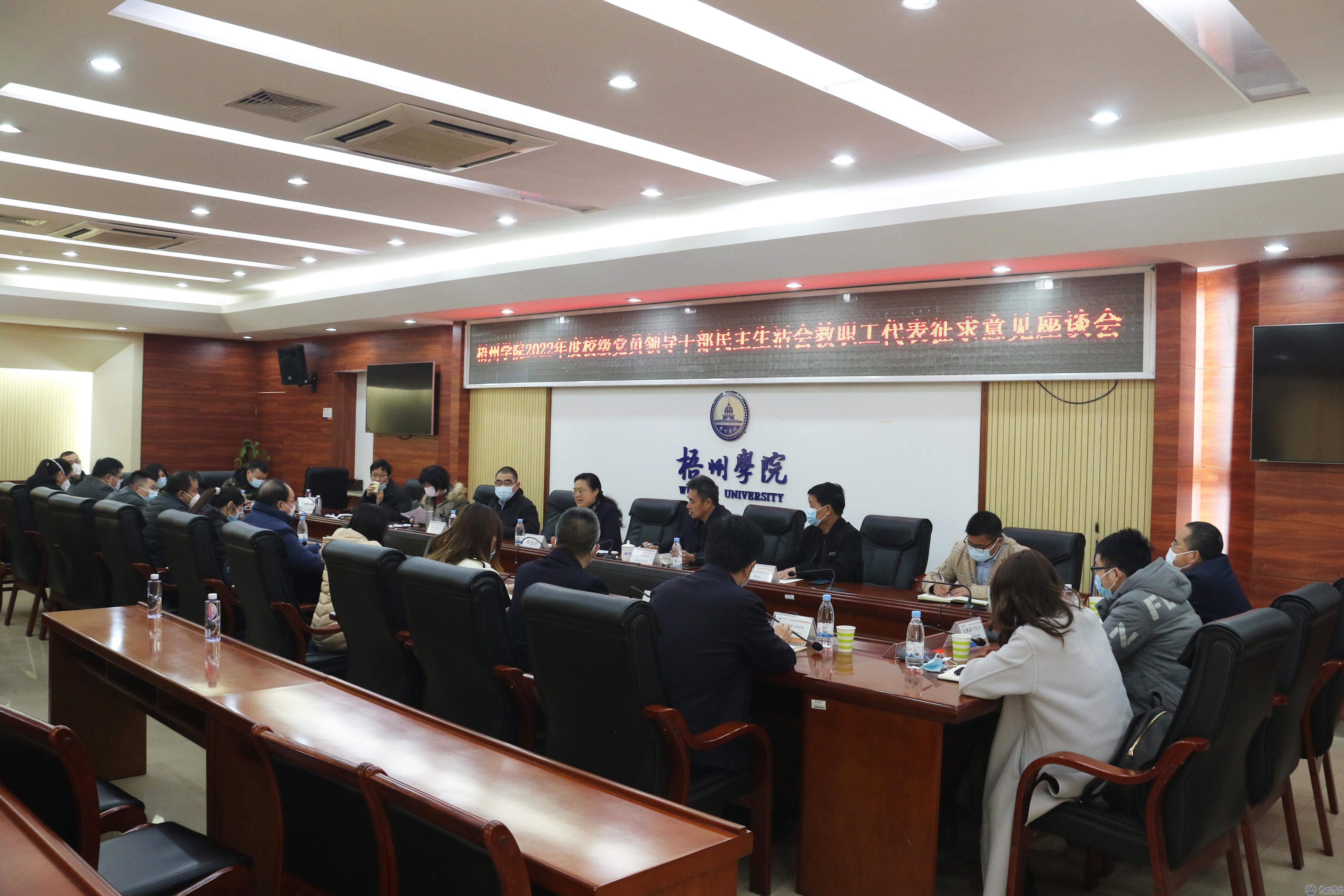 为开好2022年校级党员领导干部民主生活会,2月17日至22日,校党委书记韦仕珍、副校长范生汝分别主持召开民主生活会系列征求意见座谈会,广泛征求中层领导干部、党外知识分子、教职工和学生代表的意见和建议,党委组织部、党委统战部、人事处和学生工作部(处)主要负责人参加有关座谈会。