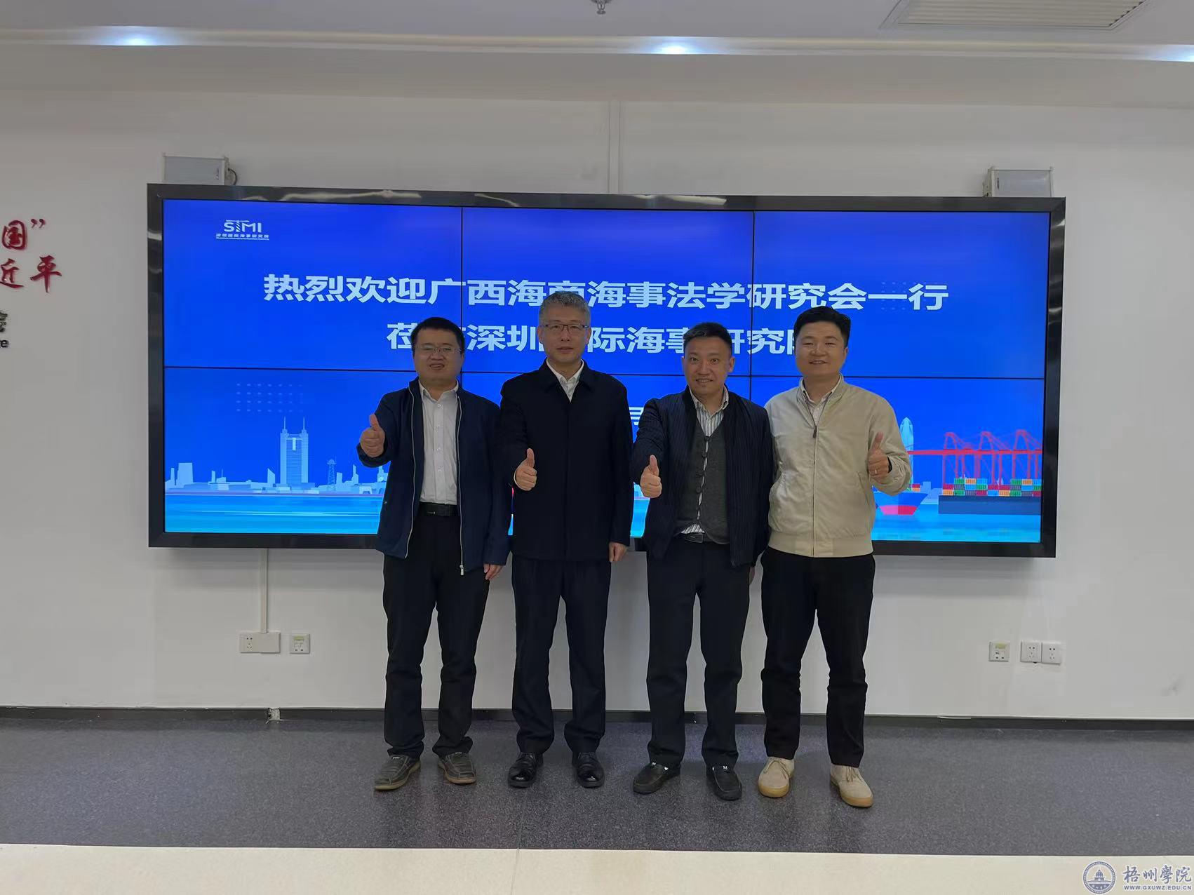 2月9日,调研组在深圳考察了大湾区高端涉海智库深圳国际海事研究院。广西海商海事法学研究会会长、梧州学院客座教授王威陪同调研。深圳国际海事研究院院长陈继红教授对调研组的到来表示了诚挚欢迎。白续辉院长介绍了“梧州学院国际经贸与法律研究院”和“广西知识产权培训(梧州学院)基地”的发展建设规划要点,特别是国际经贸与法律研究院海商海事纠纷研究室(海洋管理与执法研究室)的业务内容,通报了广西平陆运河建设和西江“黄金水道”发展情况。白续辉院长重点阐述了梧州学院国际经贸与法律研究院在“北部湾+大湾区”合作框架基础上,于2022年受广西社科联资助正式开展的“泛粤港澳大湾区”规划研究情况。陈继红院长对“泛粤港澳大湾区”这一概念设计表示了高度赞许,并指出“泛粤港澳大湾区”海事合作具有广泛的前景,深圳国际海事研究院热烈欢迎梧州学院国际经贸与法律研究院参与深圳国际海事研究院的法律政策研究与咨询服务工作。双方还就无人船、人工智能等在国际海洋贸易领域的治理问题、国际海商海事仲裁等前沿问题进行了广泛讨论。最后,双方就下一步加快推动泛粤港澳大湾区战略合作、推进国际海事服务融合和充分发挥智库作用等方面达成合作意向。