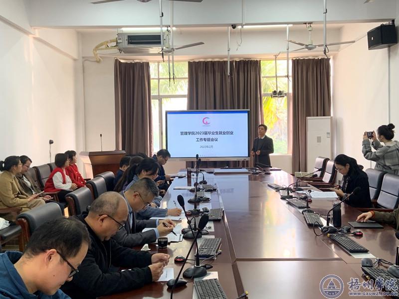 2月23日下午,管理学院在国际商务会议分析室召开2023届毕业生就业创业工作专题会议。学院党委书记冀宁、院长张堂云、党委副书记陈兴、副院长赵虹、副院长黄河、教研室主任、毕业班辅导员和毕业班班主任参加会议。会议由党委副书记陈兴主持。