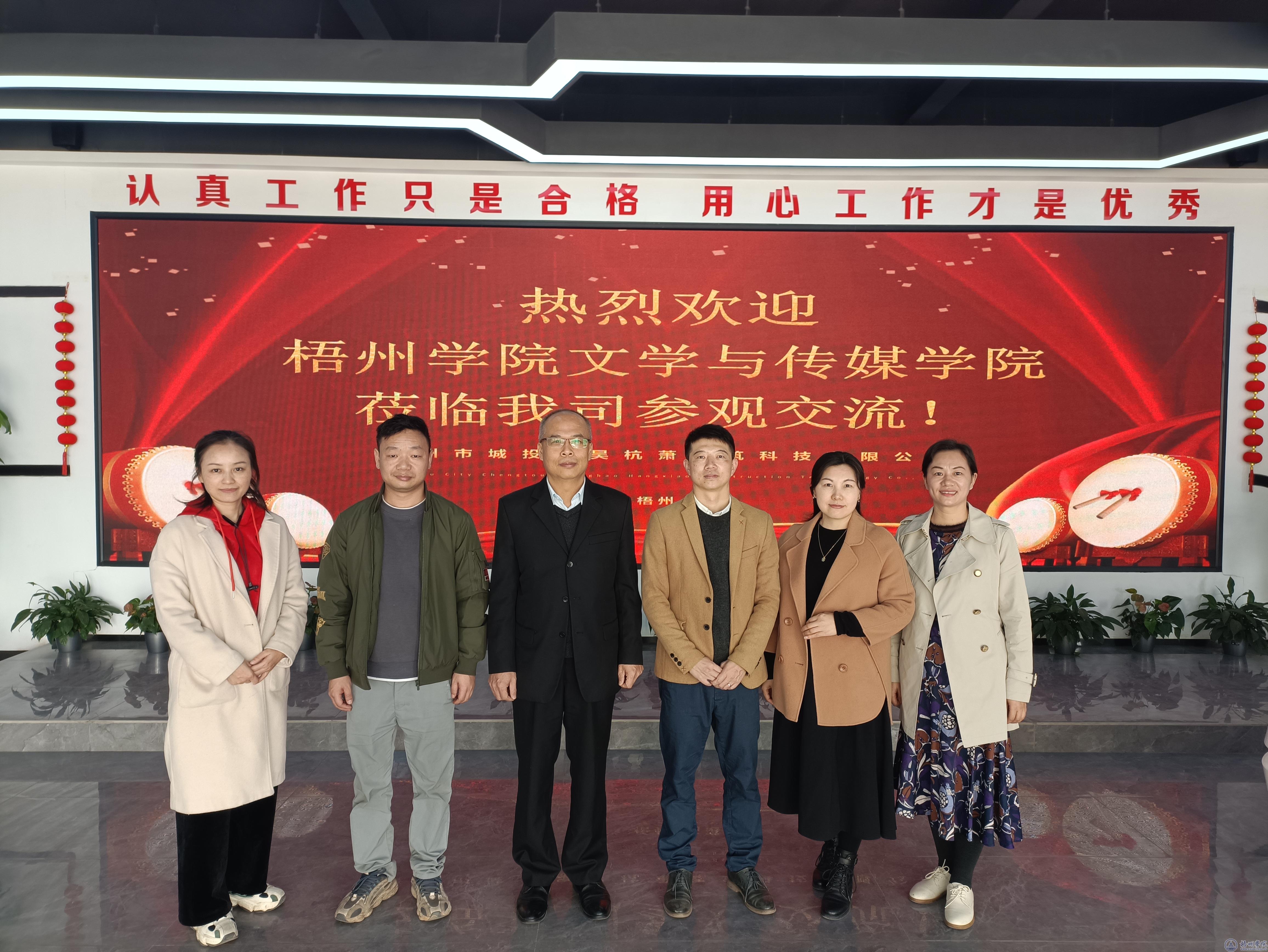 3月2日,文学与传媒学院党委书记梁宏云一行4人到梧州市城投晟昊杭萧建筑科技有限公司进行调研。梧州市城投晟昊杭萧建筑科技有限公司董事长、书记李岳诗接待了调研组一行。双方并就人才培养、就业等方面进行座谈。 梁宏云书记介绍了文传学院的专业特色和就业情况,希望通过本次调研加强双方实习实训和就业等方面的校企合作。